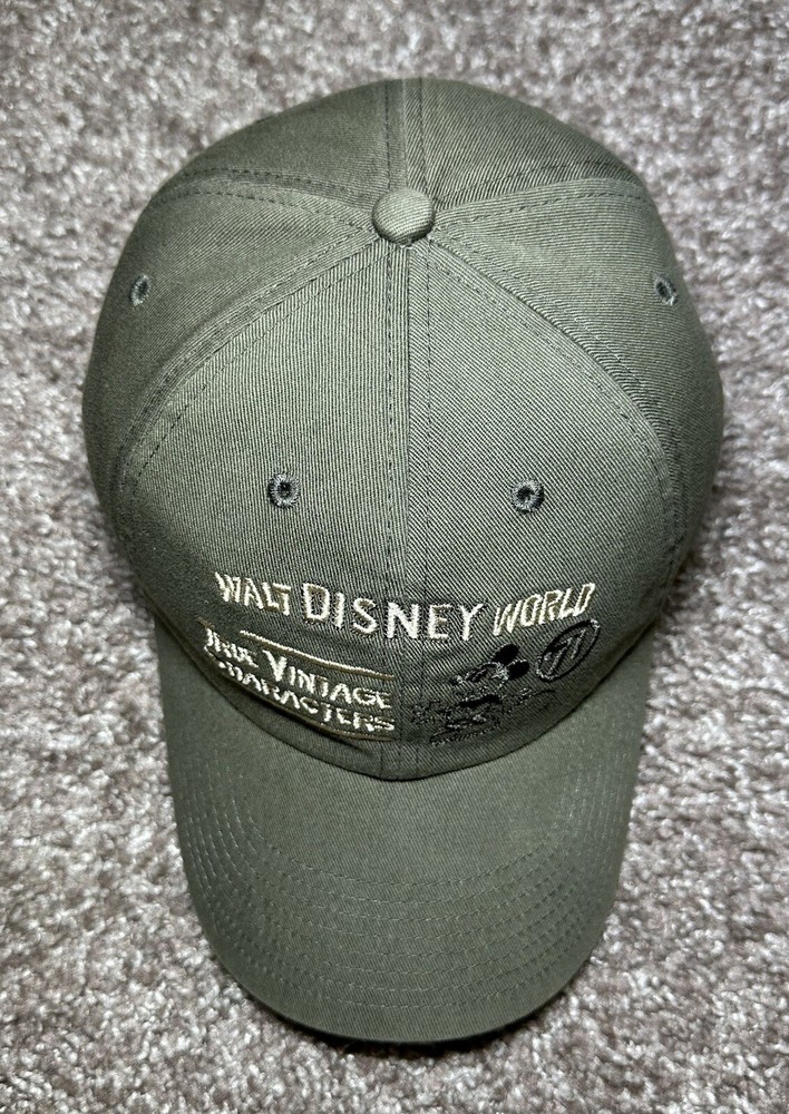 Disney Parks Men’s Baseball Cap Strap Back Hat Walt Disney World Classic Mickey Mouse Center Logo Graphic Olive Green Cotton Adjustable Strap Back Size (OSFA) one size fits all PREOWNED used in GOOD condition some wear may have some dirt or need cleaning solid shape overall no rips no tears SELLING “as is” PLEASE REFER TO PHOTOS FOR CONDITION SPECIFIC PICTURES