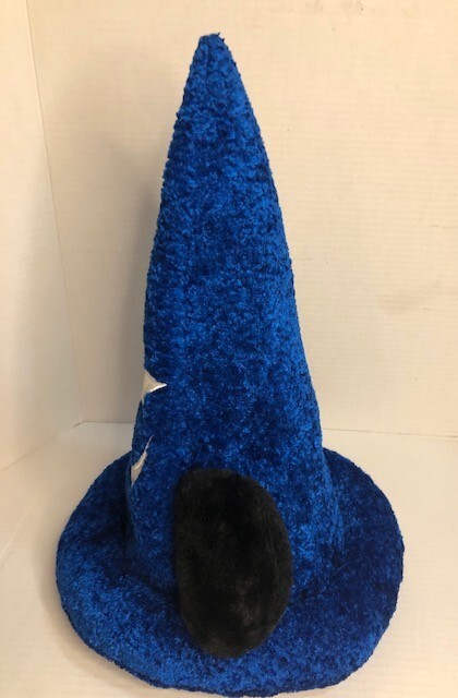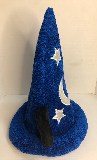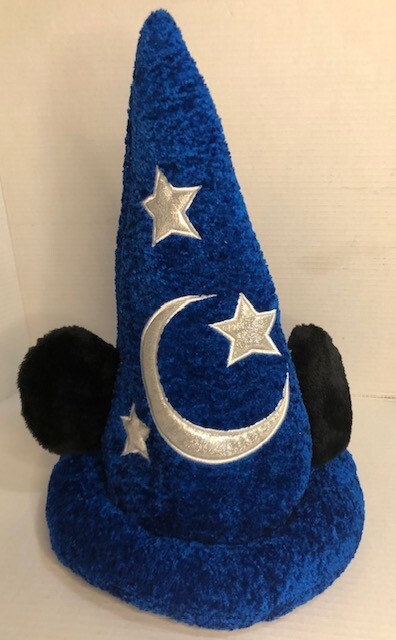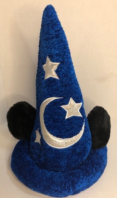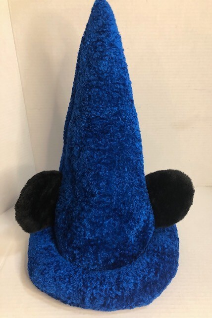 The Disney Parks Mickey Mouse Blue Fantasia Sorcerer's Wizard Hat is designed for adults and features Mickey Mouse and the iconic Fantasia Wizard theme. This hat, suitable for both men and women, is a part of the Disney franchise and is officially licensed by Disney Parks. Made in China, this adult-sized hat is in a vibrant blue color and includes Mickey Mouse ears, perfect for fans of Disney and collectors of Disney memorabilia. Perfect for adding a touch of magic and whimsy to any Disney Parks visit or everyday wear. Pre -owned and in exceptional condition