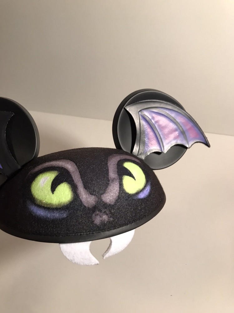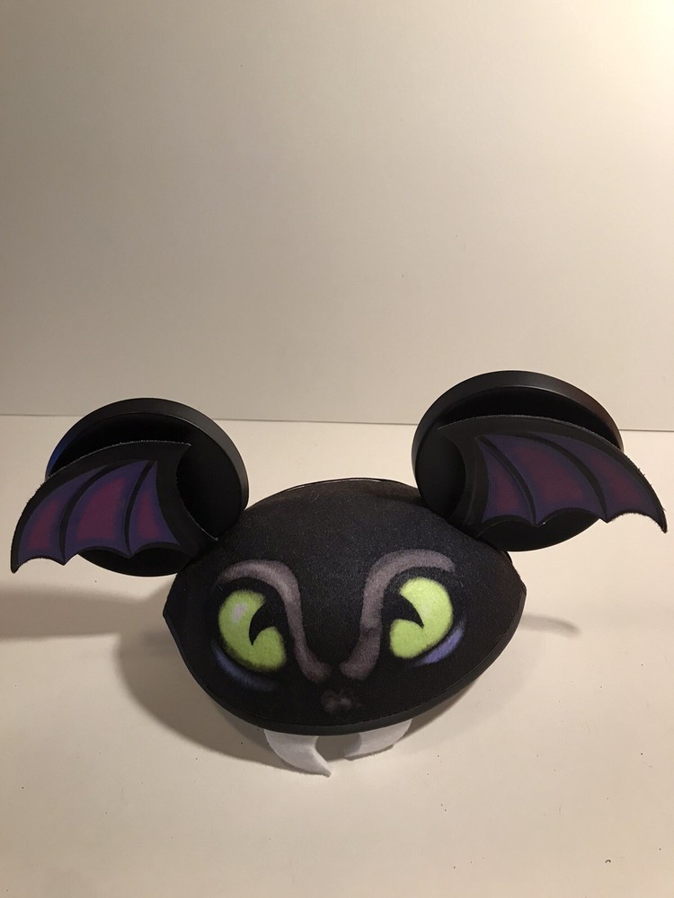 Show off your love for all things Disney with this black Mickey Mouse Ears hat. Perfect for Halloween or any day at the park, this unisex hat features the iconic dragon (or bat) design and is suitable for any fan of the franchise. Represent your favorite character and theme with this officially licensed Disney product, perfect for collectors and enthusiasts alike. Whether you're heading to the convention or just running errands, this hat is the perfect addition to your Disneyana collection.