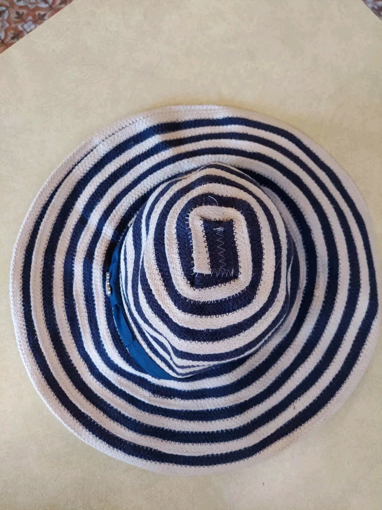 Disney Parks Mickey Mouse Floppy Sun Hat Wide Brim Beach Blue Striped Summer. Condition is Used. Shipped with USPS Ground Advantage....