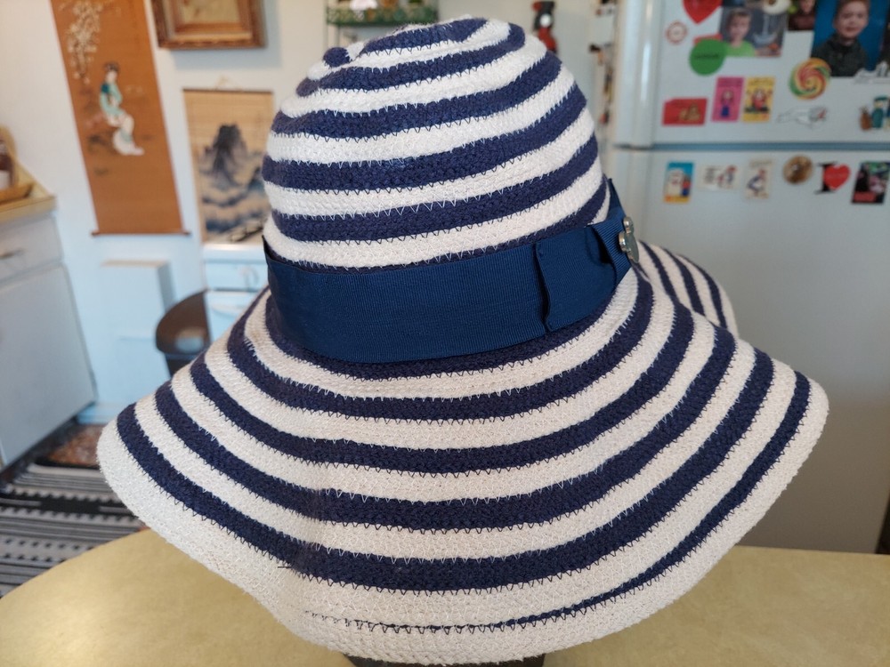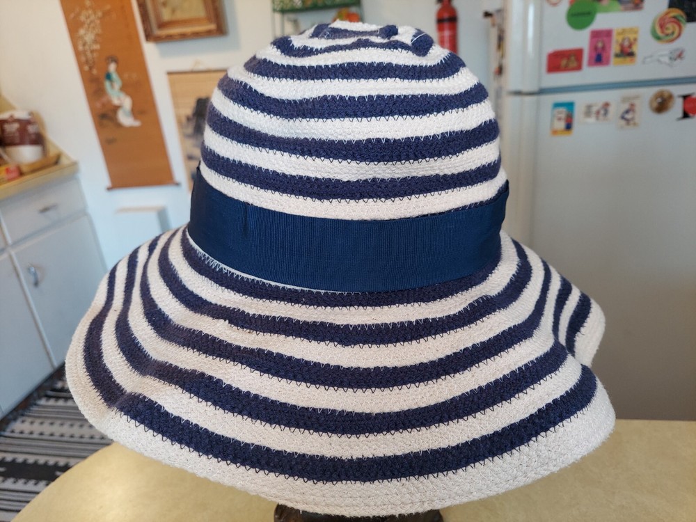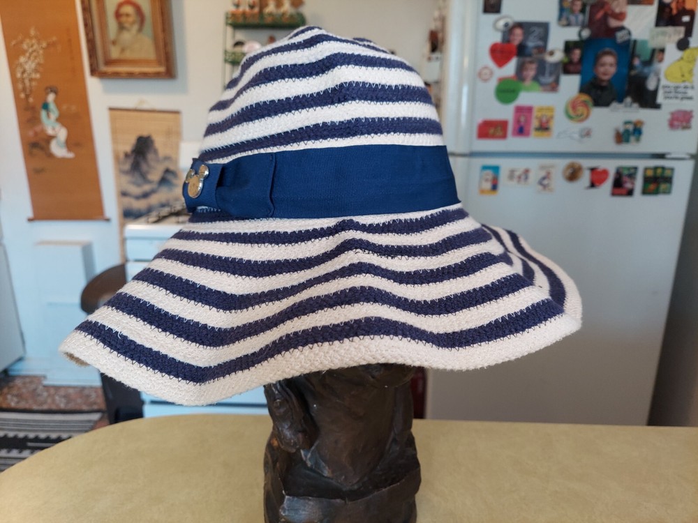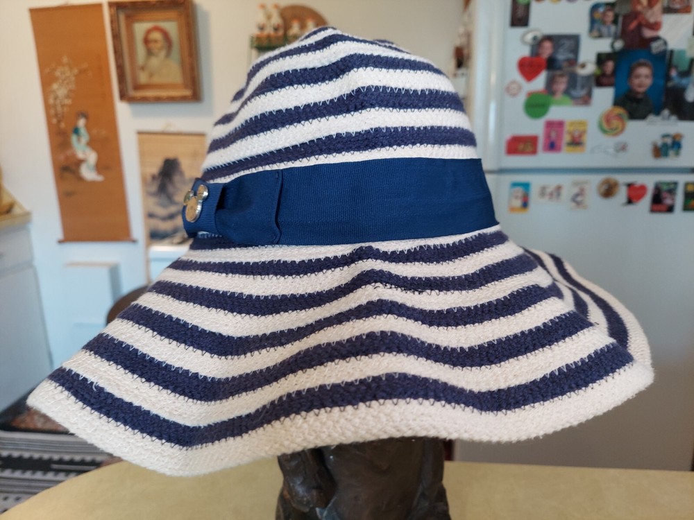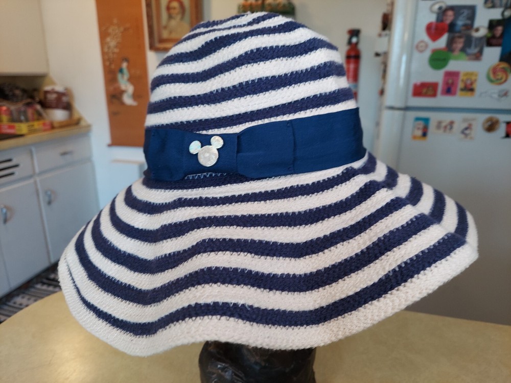 Disney Parks Mickey Mouse Floppy Sun Hat Wide Brim Beach Blue Striped Summer. Condition is Used. Shipped with USPS Ground Advantage.