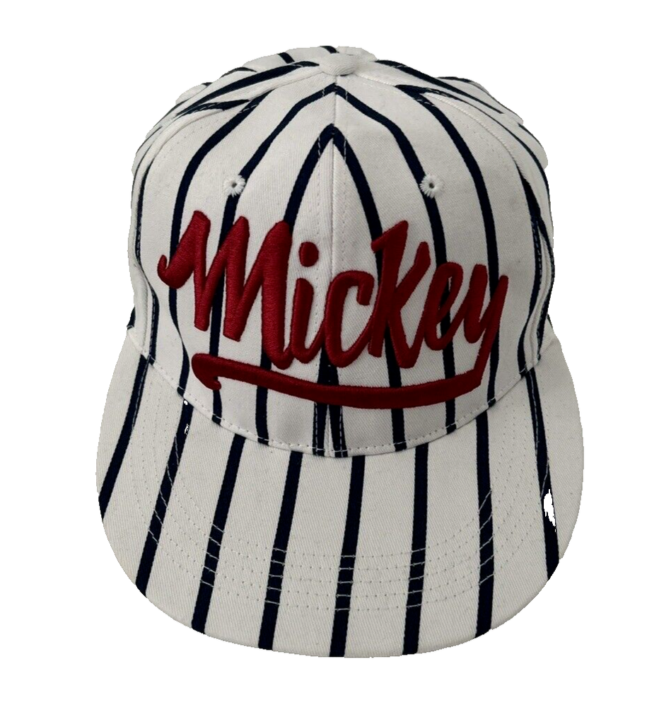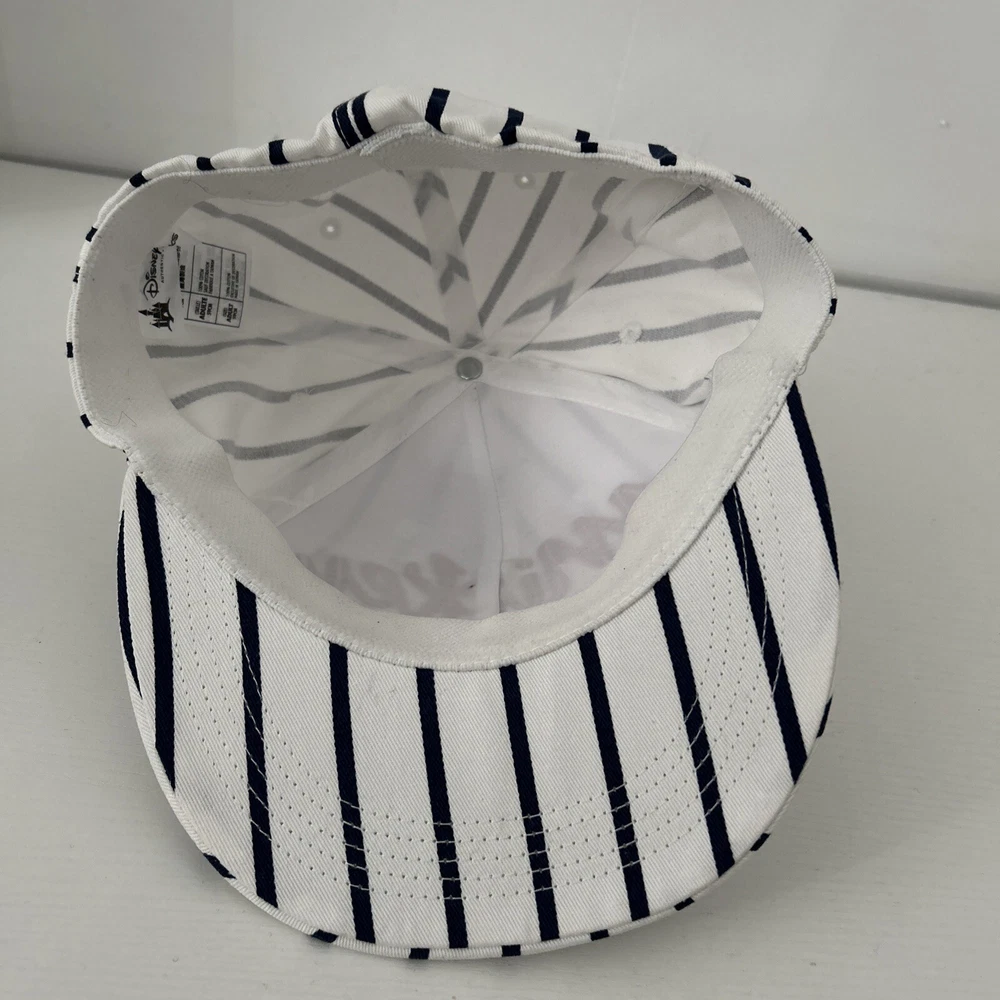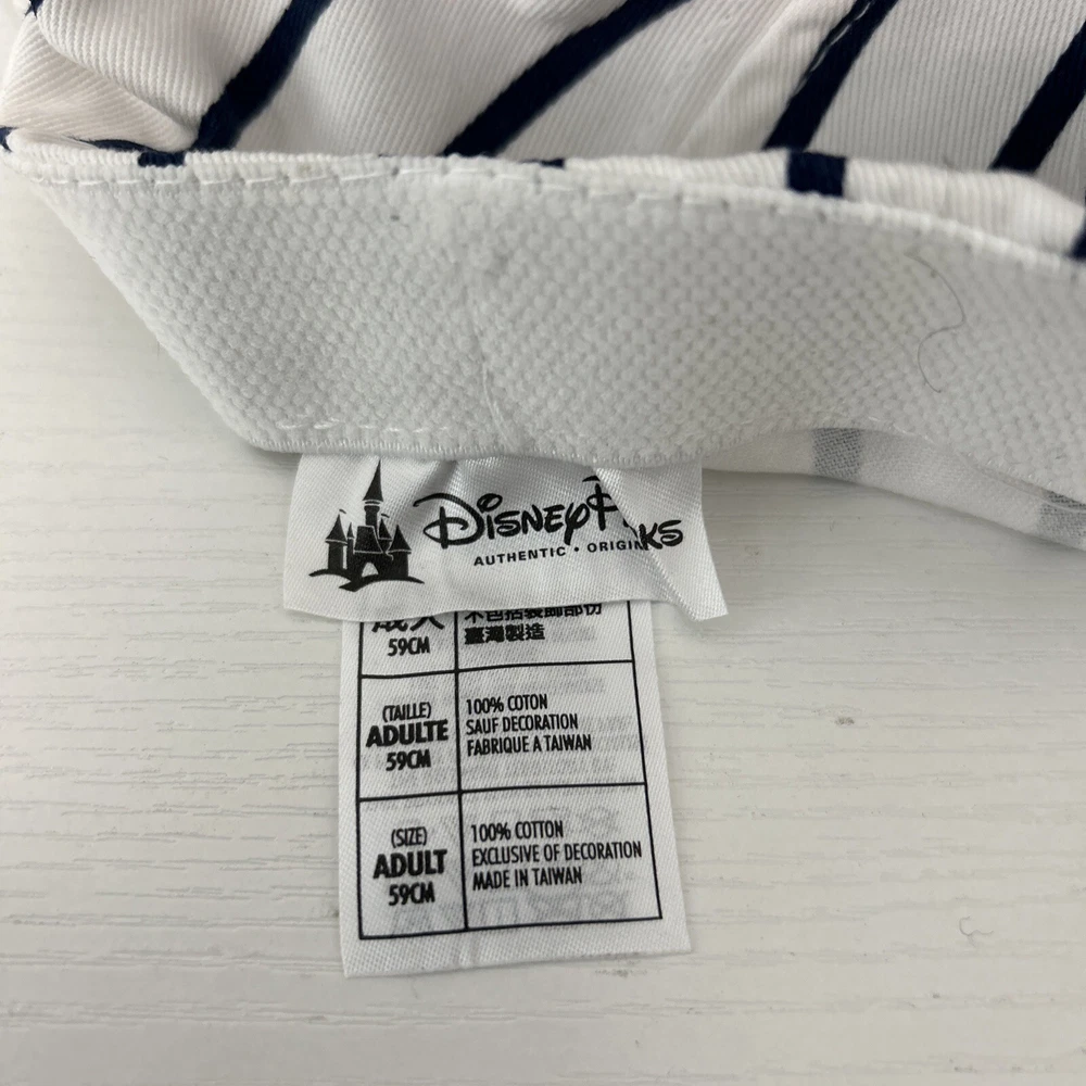 Disney Parks Mickey Mouse Pin Stripe Hat White Blue OSFA Adult Embroidered 59cm Made in Taiwan 100% Cotton Used, excellent condition. Please see photos as photos are part of the description. Hat will be shipped in a box using USPS ground advantage.