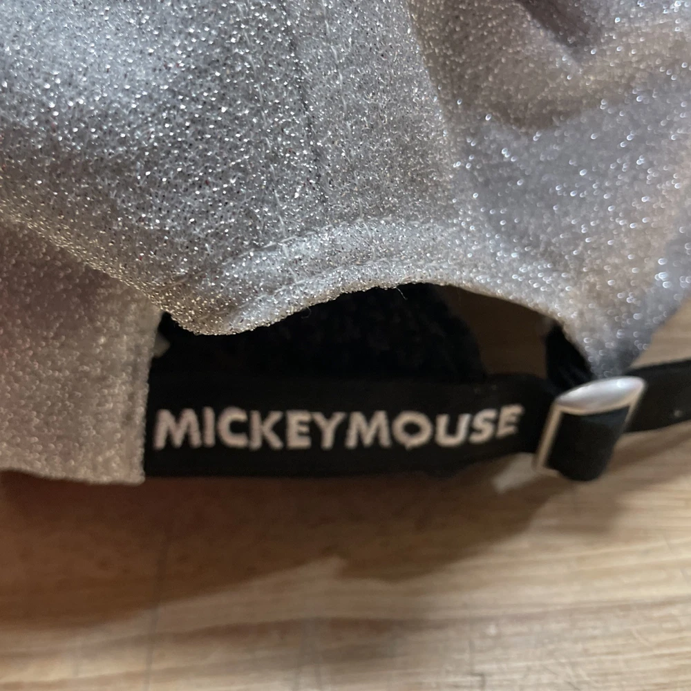 The Disney Parks Mickey Mouse Pompom Hat is a sparkly silver baseball cap featuring Mickey Mouse embroidery, making it a whimsical and fun accessory for any casual occasion during the warmer seasons of summer, fall, and spring. The adjustable size ensures a comfortable fit for women of all ages, adding a touch of Disney magic to any outfit. Perfect for fans of the iconic Mickey Mouse character, this stylish hat is a must-have for any Disney enthusiast looking to show off their fandom in a trendy way.
