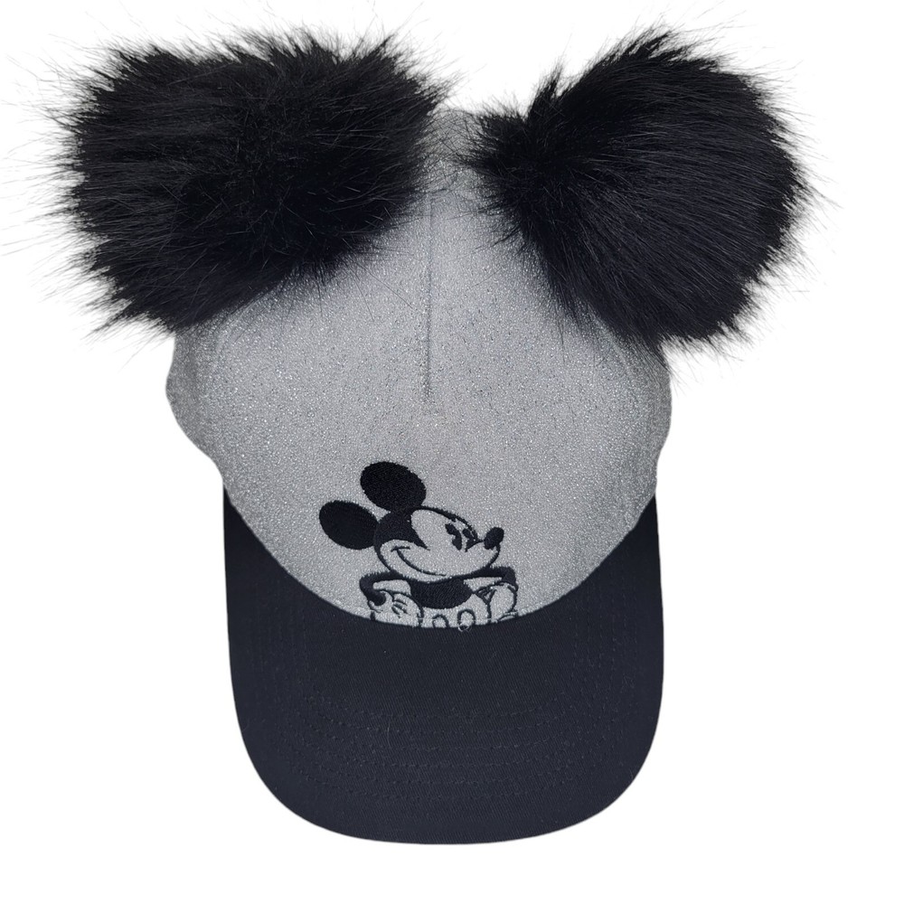 Disney Parks Mickey Mouse Sparkly Black Silver Pom Pom Hat Ball Cap Adult Unisex Excellent pre-owned condition. No flaws. *Smoke/pet free home*...