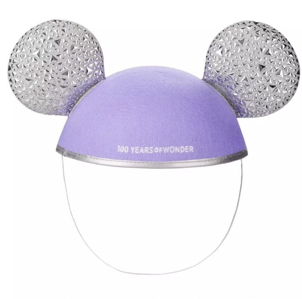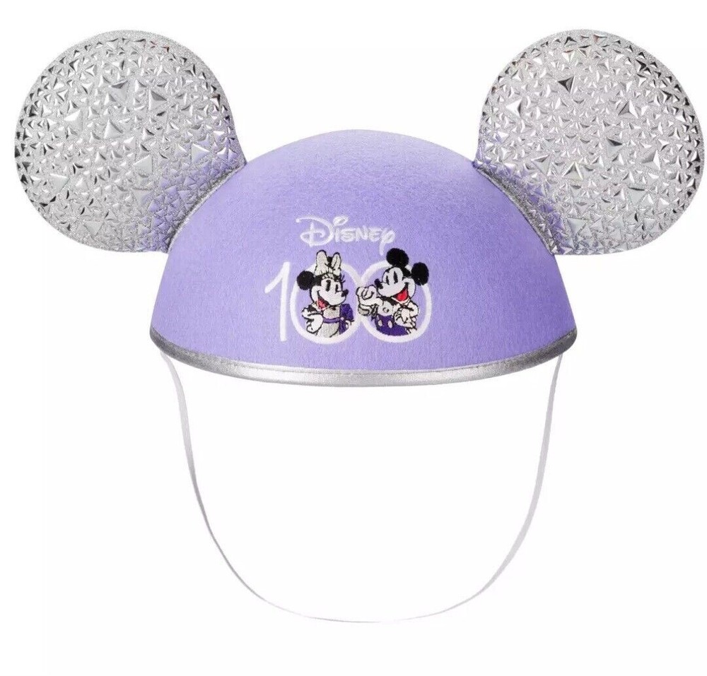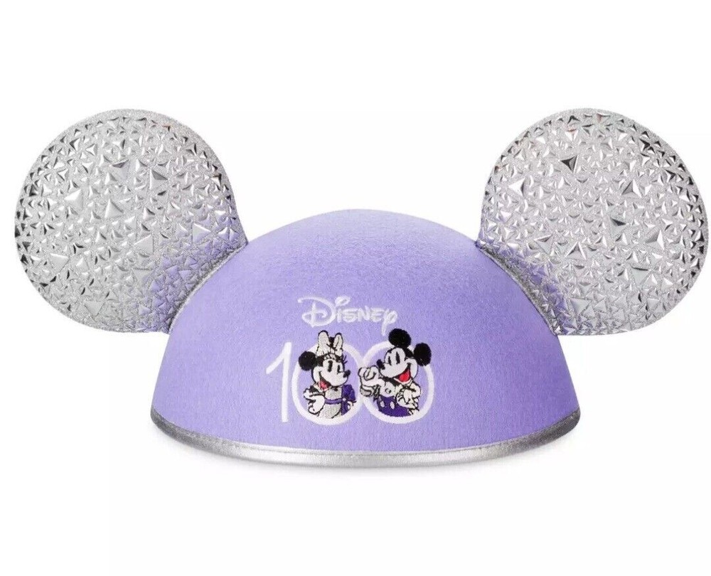 Disney Parks Mickey and Minnie Mouse Disney100 Ear Hat for Adults - NEW Embroidered ''Disney100'' text with Mickey and Minnie Mouse embroidered designs Embroidered appliqué border Glittering 3D mouse ears Allover textured pattern with platinum coloring Elastic chin strap Part of the Disney100 Celebration Collections One size fits most adults Polyester Approx. 5 1/2'' H x 11 3/4'' W Imported