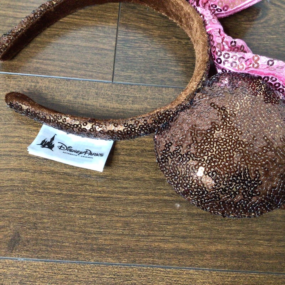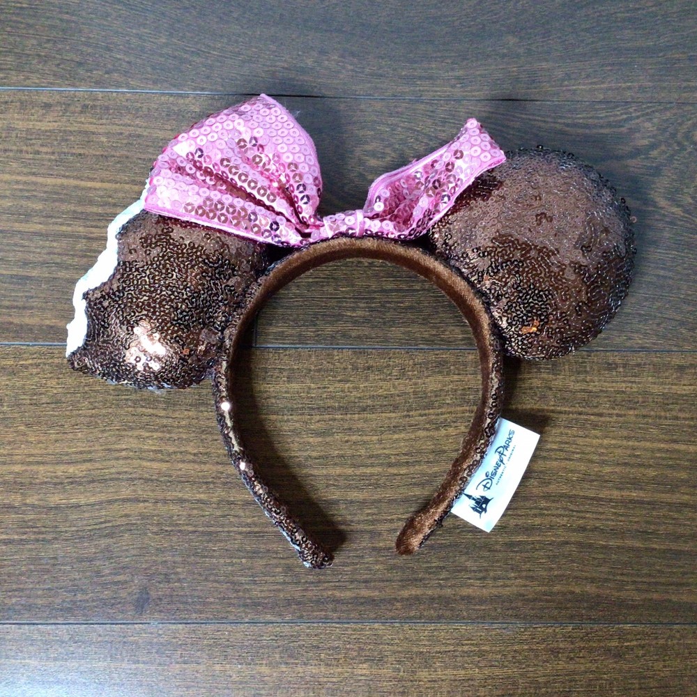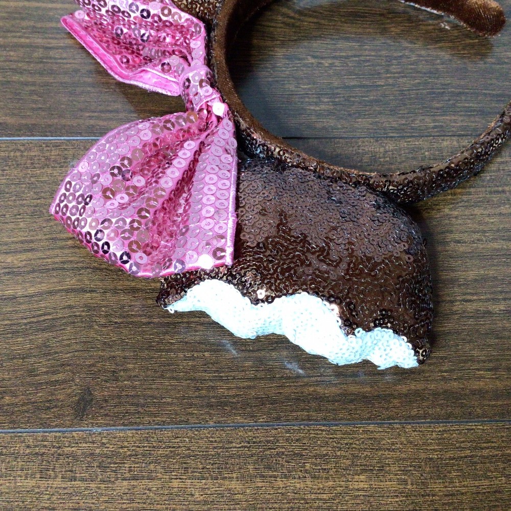Disney Parks Mickey Ears Chocolate Ice Cream Bar Sequins Headband w/ Minnie Bow FREE shipping
