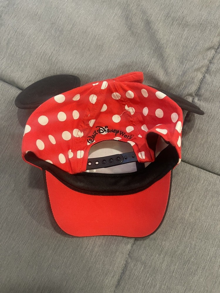 This Disney Parks Minnie Mouse Ears Baseball Cap is a must-have for any young fan of the beloved character. The red, black, and white snapback cap features Minnie's iconic ears and bow, making it a fashionable addition to any outfit. Perfect for girls of any age range, the one-size-fits-all cap is made by Disney and comes straight from the Walt Disney World Resort in Taiwan. It's a great way to show off your love for Disney and Minnie Mouse, while also keeping the sun out of your eyes. Whether you're a collector of Disneyana or just a fan of the franchise, this cap is a wonderful addition to your apparel and accessories collection. Don't miss out on this authentic Disney Parks cap!