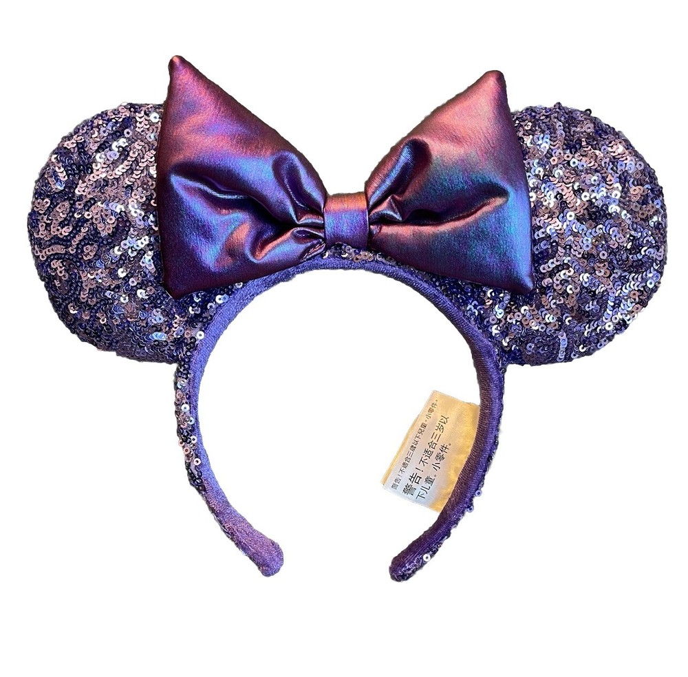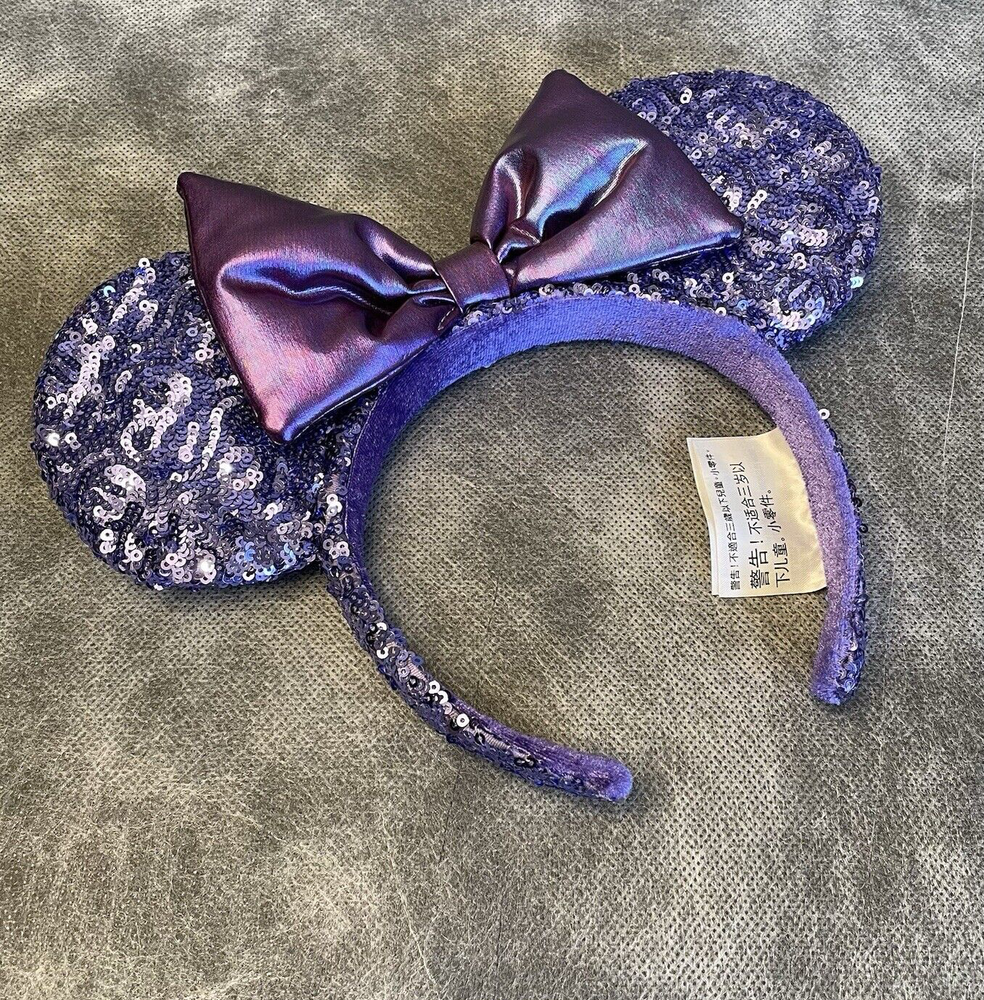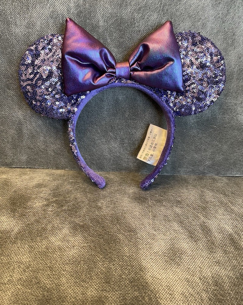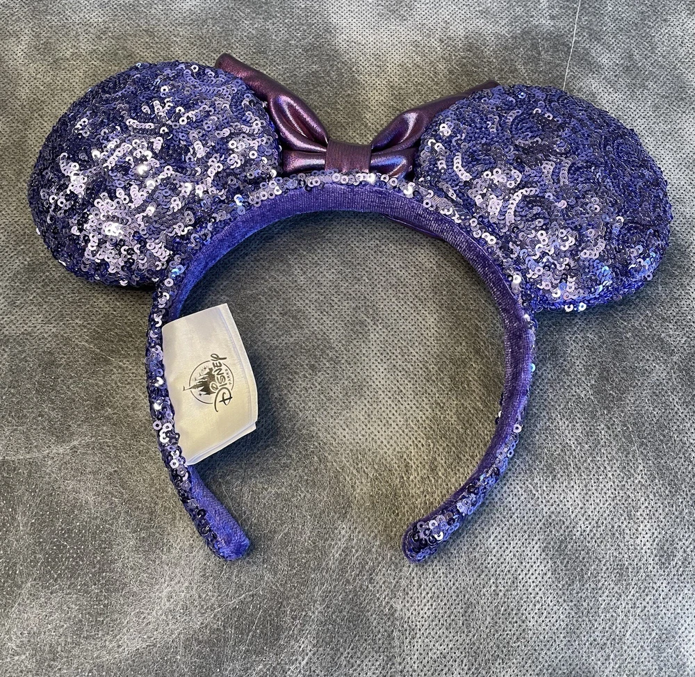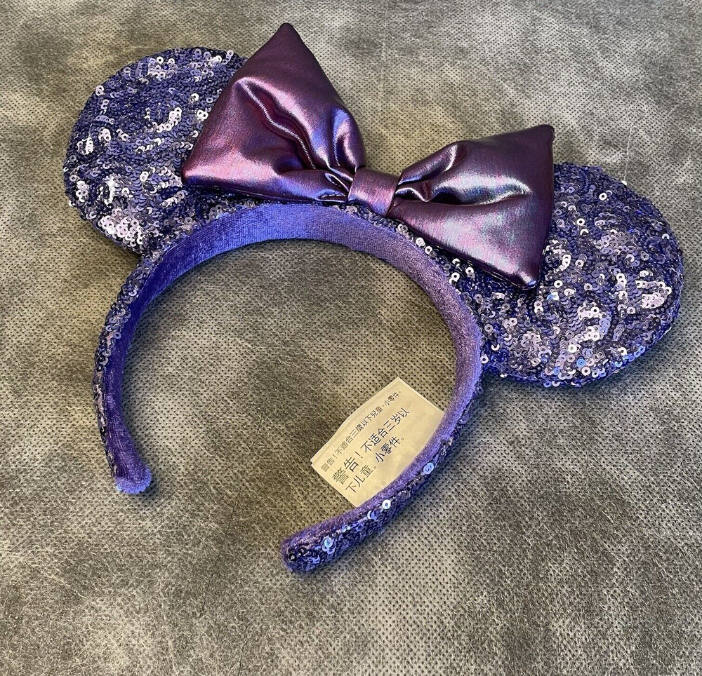 Absolutely love these sparkly Minnie ears! The purple sequins catch the light beautifully and the bow is perfectly shaped. Even with minor vintage wear, they look stunning and feel well-made. Great addition to my Disney collection!