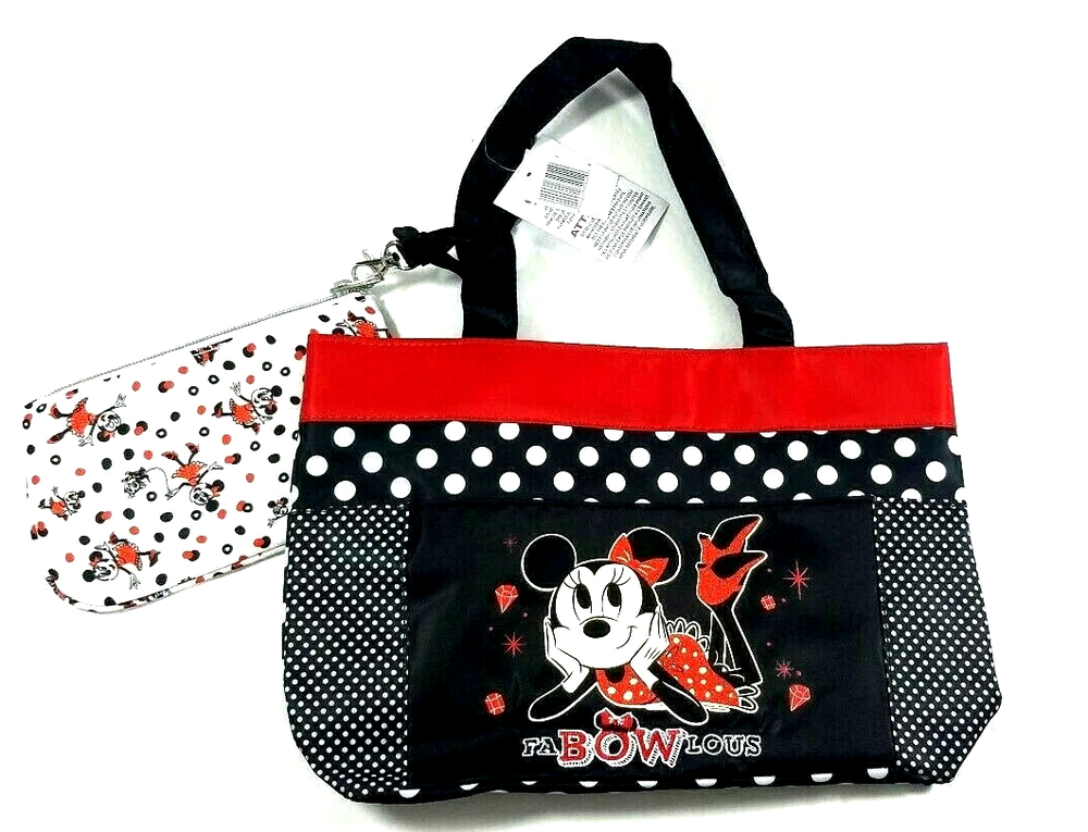Brand New with Tags. Disney Parks FaBowlous Minnie Mouse Purse & matching zippered wallet. Measures about 12"W x 11-1/2"H x 3"D Custom blinged with quality gems. Man Made Materials Will ship quick Tha...