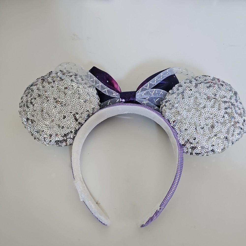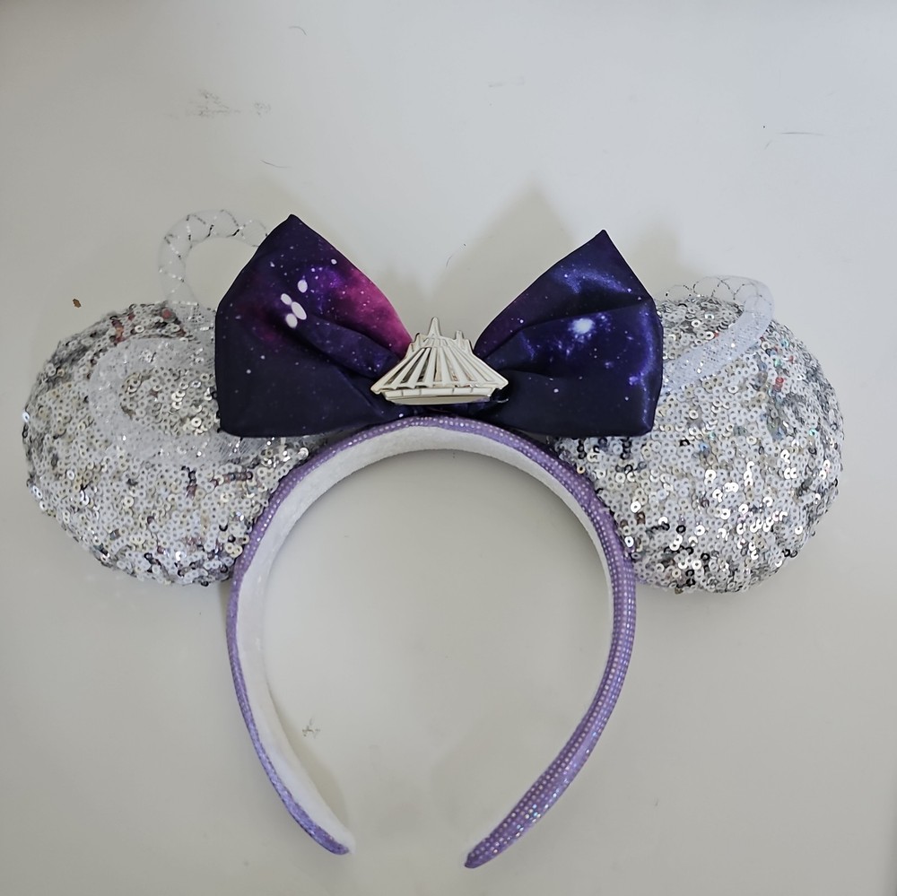 The Disney Parks Minnie Mouse The Main Attraction Space Mountain Ears Headband is a cute and fun accessory suitable for both kids and adults. Featuring a pink and white design with Minnie Mouse ears, this headband is a must-have for any Disney fan. It is part of the Disney franchise and suitable for both unisex wear. Perfect for adding a touch of Disney magic to any outfit, this headband is a collectible item that captures the essence of the beloved Disney Parks experience.