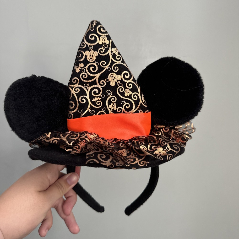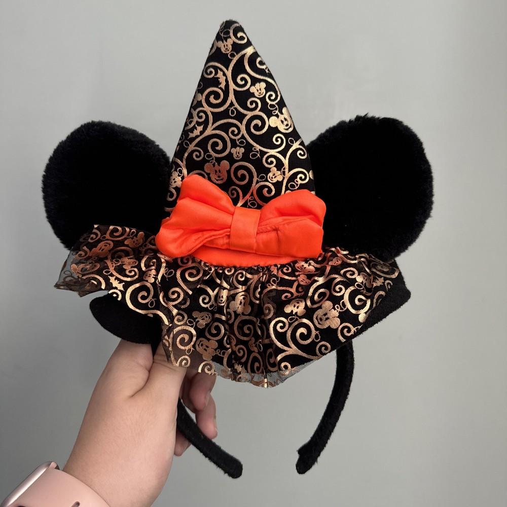 Get ready for Halloween with this Disney Parks Minnie Mouse Witch Ears Headband. The orange and gold colors give it a spooky yet fun look. Perfect for any young girl who loves Disney and wants to add a touch of magic to her Halloween costume. The headband features Minnie Mouse, a beloved character from the Disney franchise, and is suitable for everyday wear.