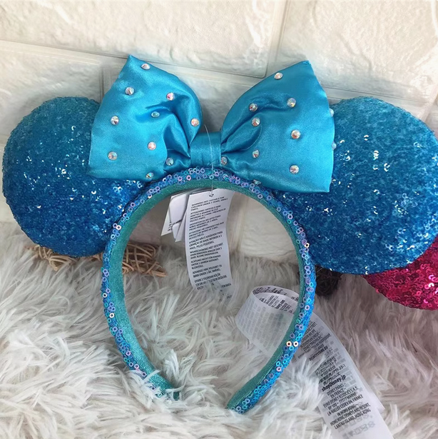 Absolutely love these Minnie ears! The aqua sequins sparkle beautifully, and the diamond accents add a touch of elegance. Perfect fit for both kids and adults—super comfortable for all-day wear at the parks. The color is even prettier in person! Great quality and fast shipping. A must-have for any Disney fan!