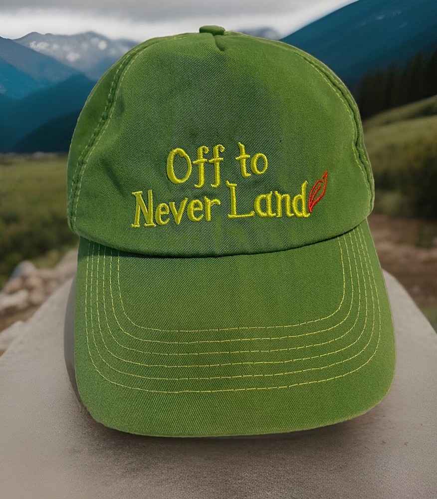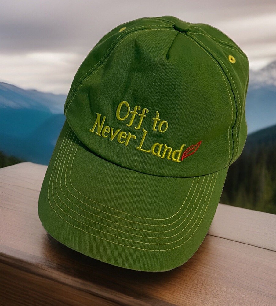 Disney Parks Peter Pan 'OFF TO NEVER LAND' Baseball Cap Hat Green Neverland. Item is in very good condition please see pictures for further details feel free to contact me for any questions