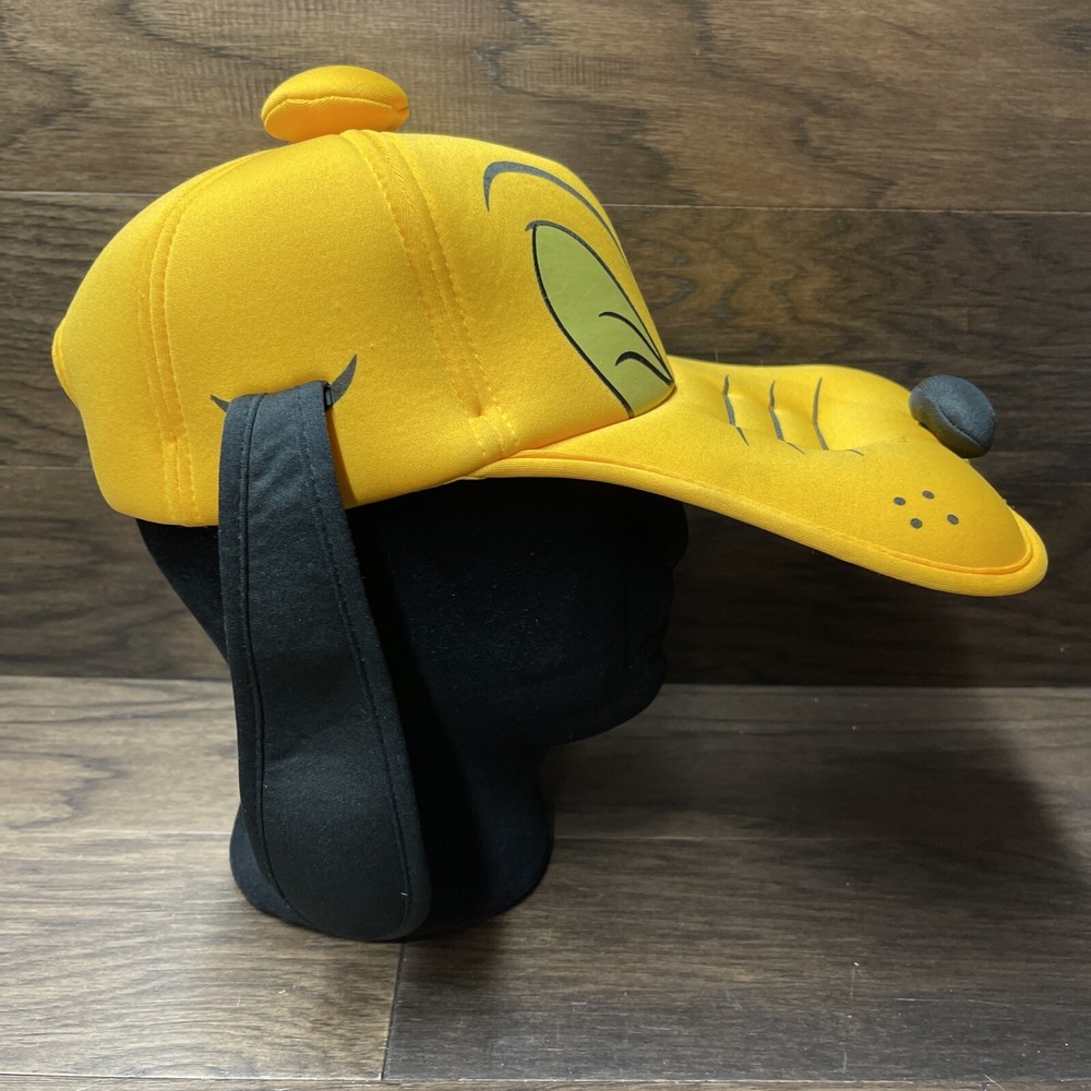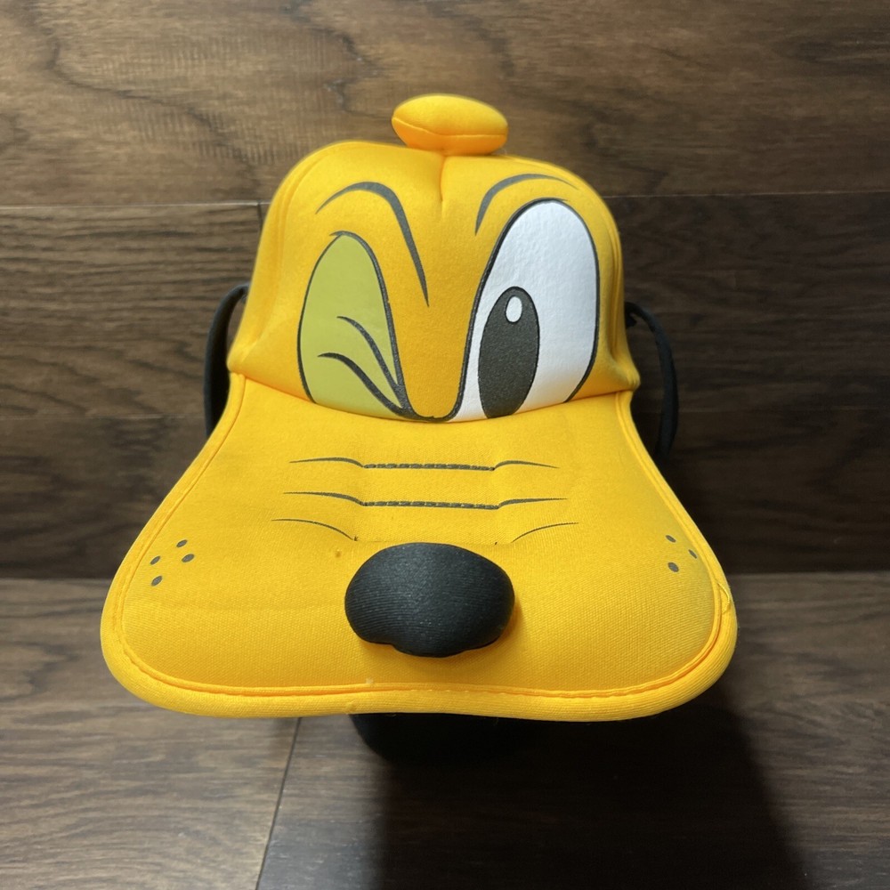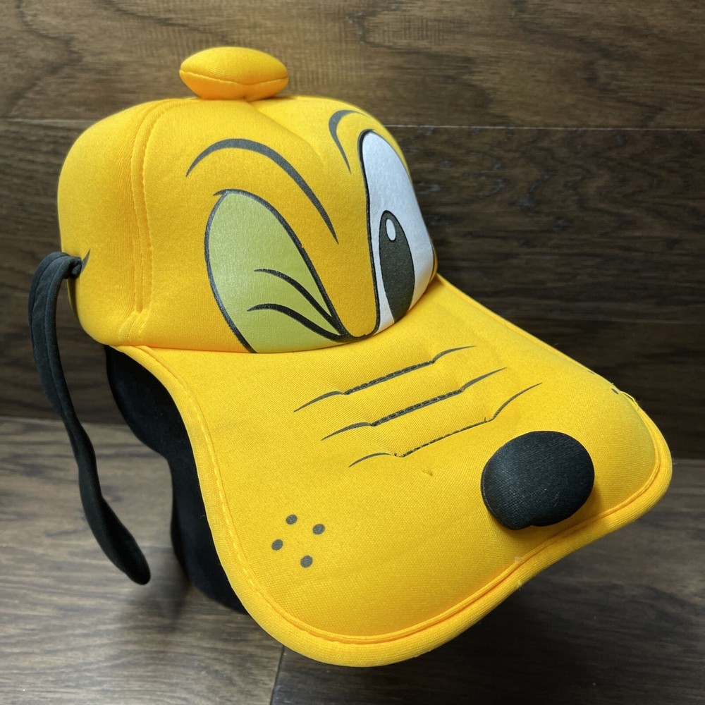Preowned and very gently worn. EUC. Exact condition as shown in photos Add a touch of Disney magic to your wardrobe with this adorable Pluto hat from Walt Disney World. The bright yellow cap features soft plush ears and a cute winking dog face design. Perfect for fans of all ages, this one-size-fits-all hat has an elastic back for a comfortable fit. Whether you're headed to a Disney convention or just want to show off your love for the iconic character, this Pluto hat is the perfect accessory. Don't miss out on this classic Disney collectible, suitable for both men and women.