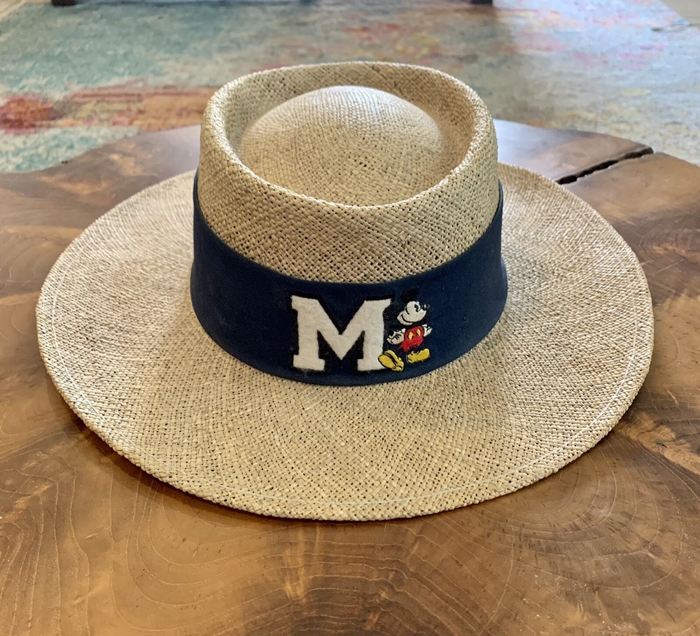 Disney Parks Straw Hat Mickey Mouse Golf 1970’s - 80’s Garden Sun Woven Fits All. Measures 14” by 15” by 4” Only worn 3x, lightly used. Great condition with no signs of stains, creases, etc…. The internal elastic headband works like new. Made in America Headband is dark navy blue and not black