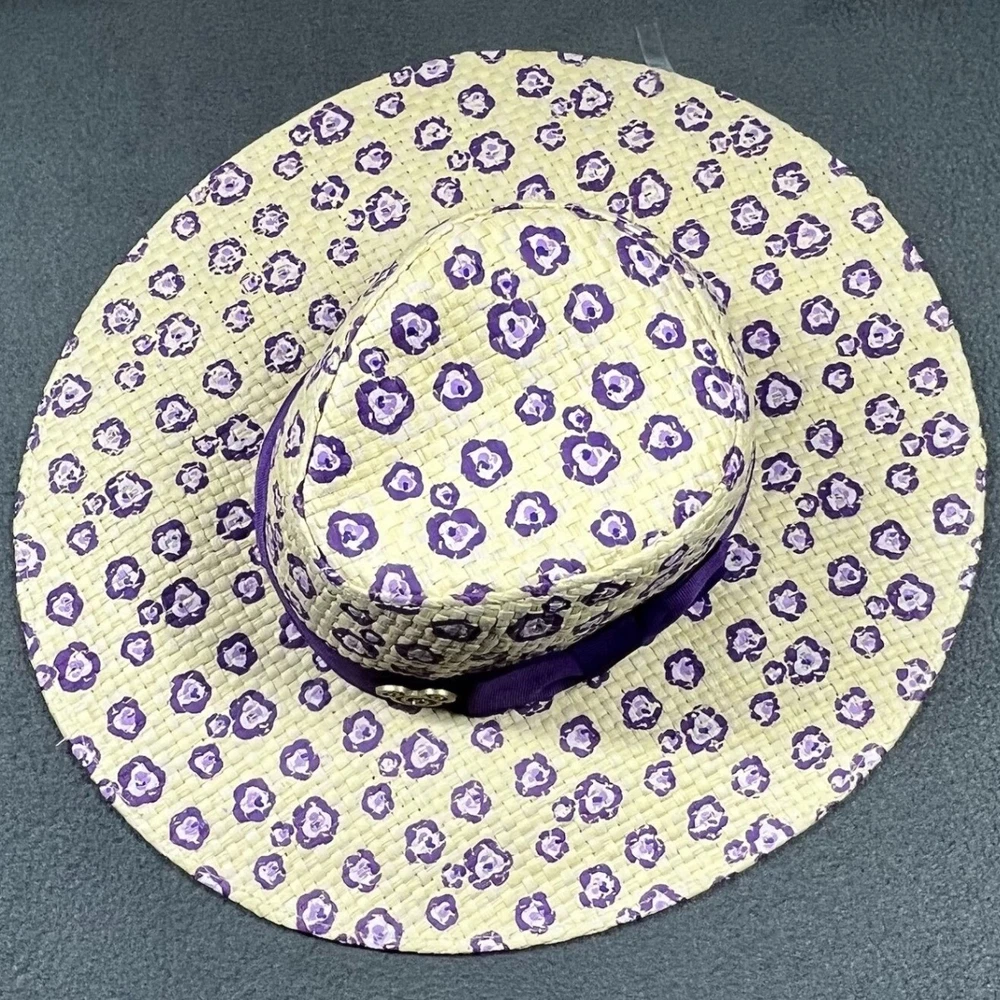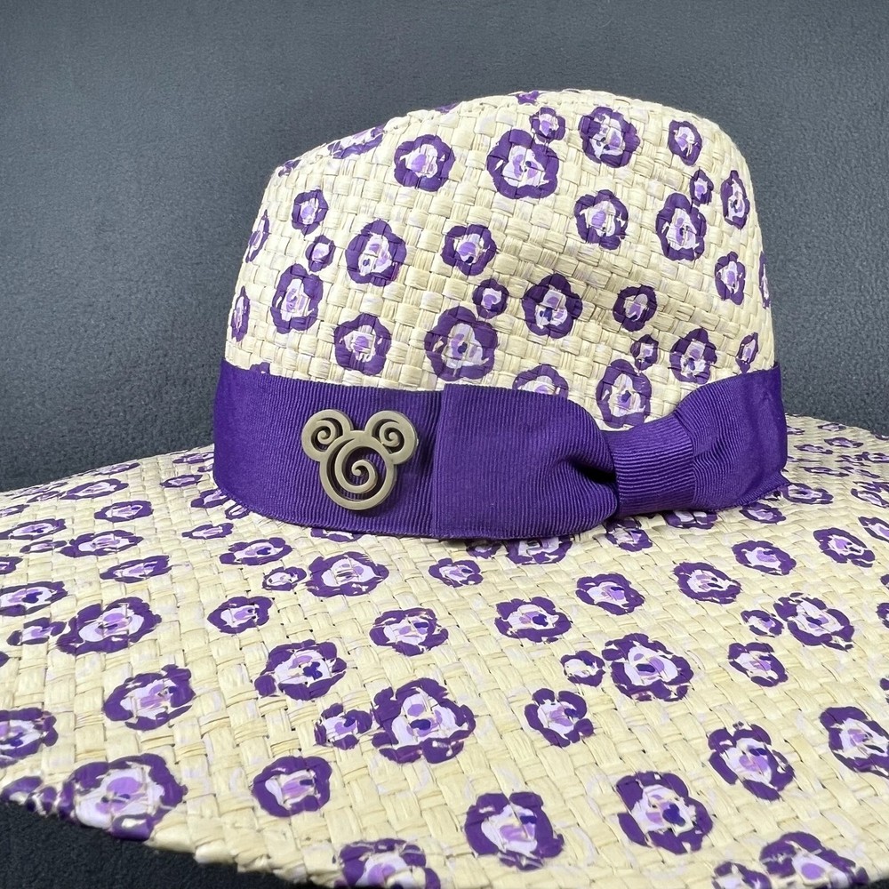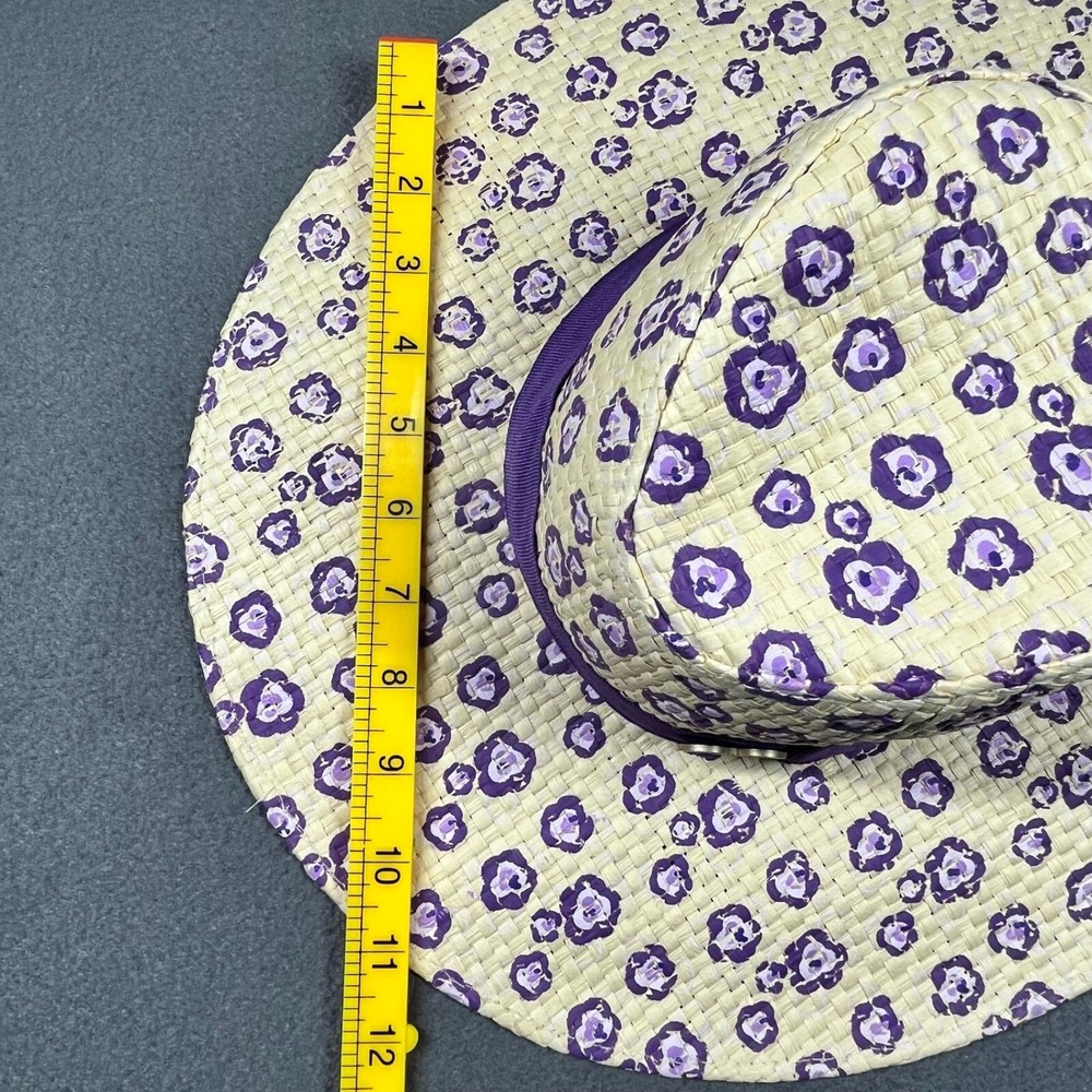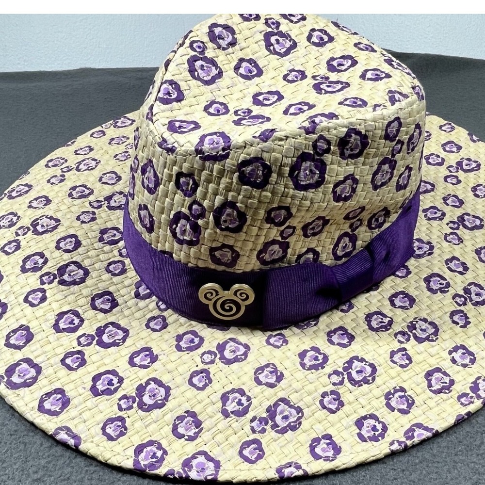 A charming Disney Parks sun hat, perfect for adding a touch of whimsy to your sunny day attire. This straw hat features an all-over purple floral pattern, complemented by a stylish purple ribbon accent. A subtle yet distinctive Mickey Mouse emblem adorns the ribbon, adding a signature Disney touch. The hat is designed for adults and provides ample shade with its wide brim. Style: Sun Hat Color: Beige Department: Women Material: Paper Season: Spring, Summer Character: Mickey Mouse Accents: Bow, Logo Features: Wide Brim, Lightweight Occasion: Casual, Travel Keywords: Disney Parks hat, Mickey Mouse hat, straw sun hat, purple floral hat, womens hat, adult hat, 59cm hat, Disney fashion, summer hat, beach hat, wide brim hat, Disney accessories, floral sun hat, purple ribbon hat pre-owned condition No rips No holes No stains Measurements laid flat approx Measurements in pic