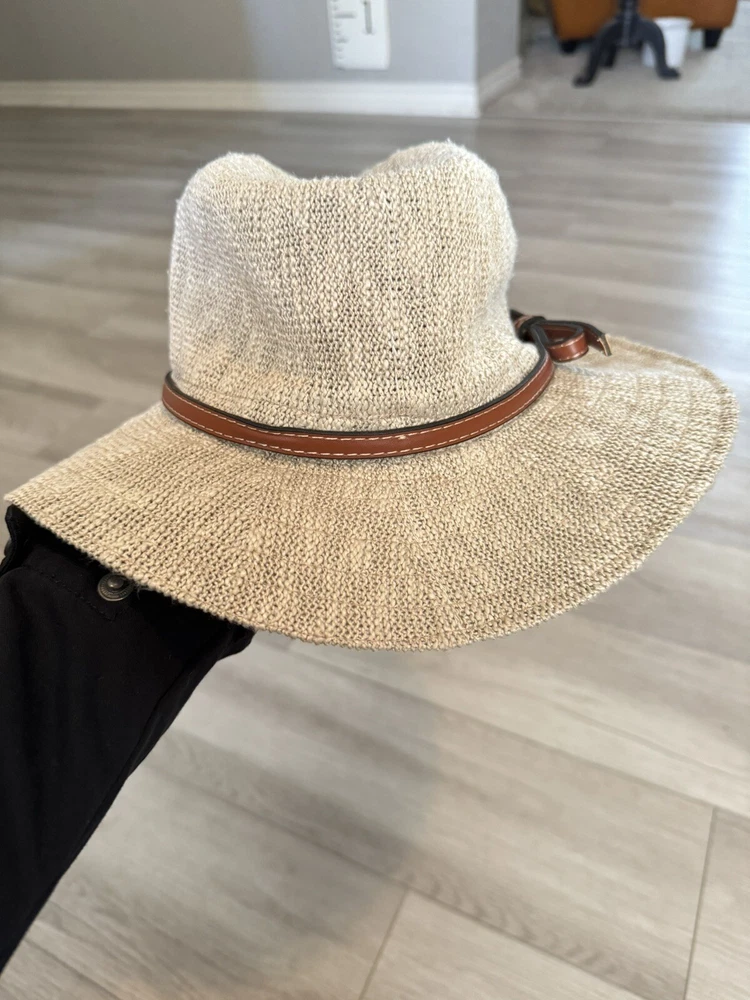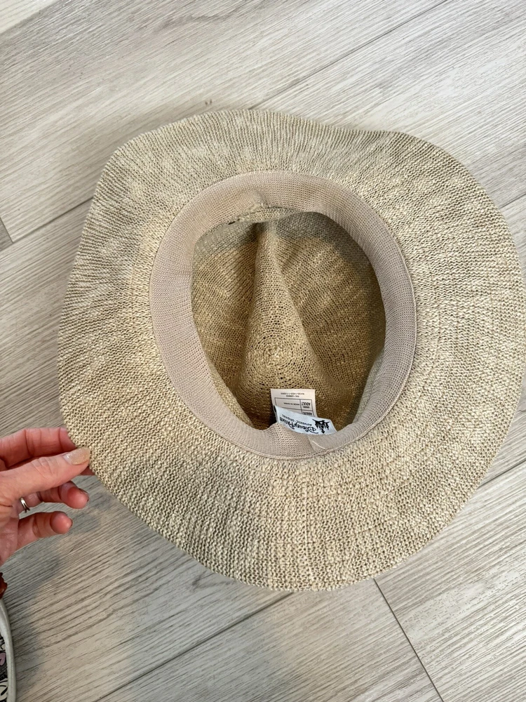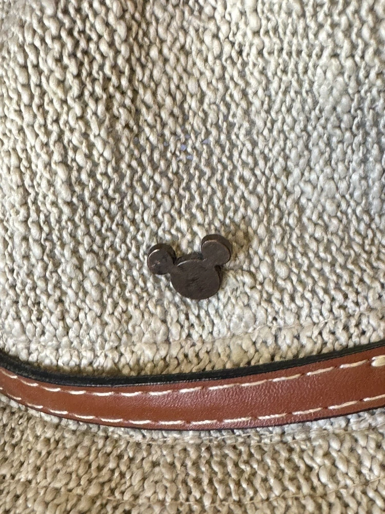 Add a touch of Disney magic to your vacation collection with this stylish woven hat from Disney Parks. The tan safari style hat features a leather-like bow and Mickey Mouse Metal logo design, perfect for any Disney lover. This women’s hat is suitable for adults and is a great addition to any Disneyana or contemporary collectibles collection. The hat is perfect for fans of Disneyland, Walt Disney World, and the Disney franchise in general. Elevate your hat game with this unique and stylish piece. Small amount of discoloration on inside. See last picture. It is a floppy hat and brim is not straight. Could probably be reshaped with a spray bottle, and leaving it flat to dry. Otherwise in nice condition.