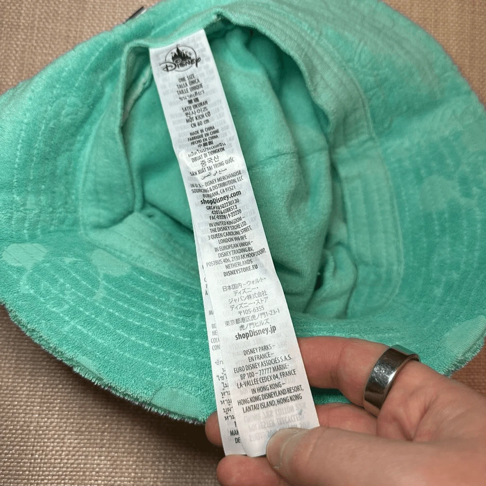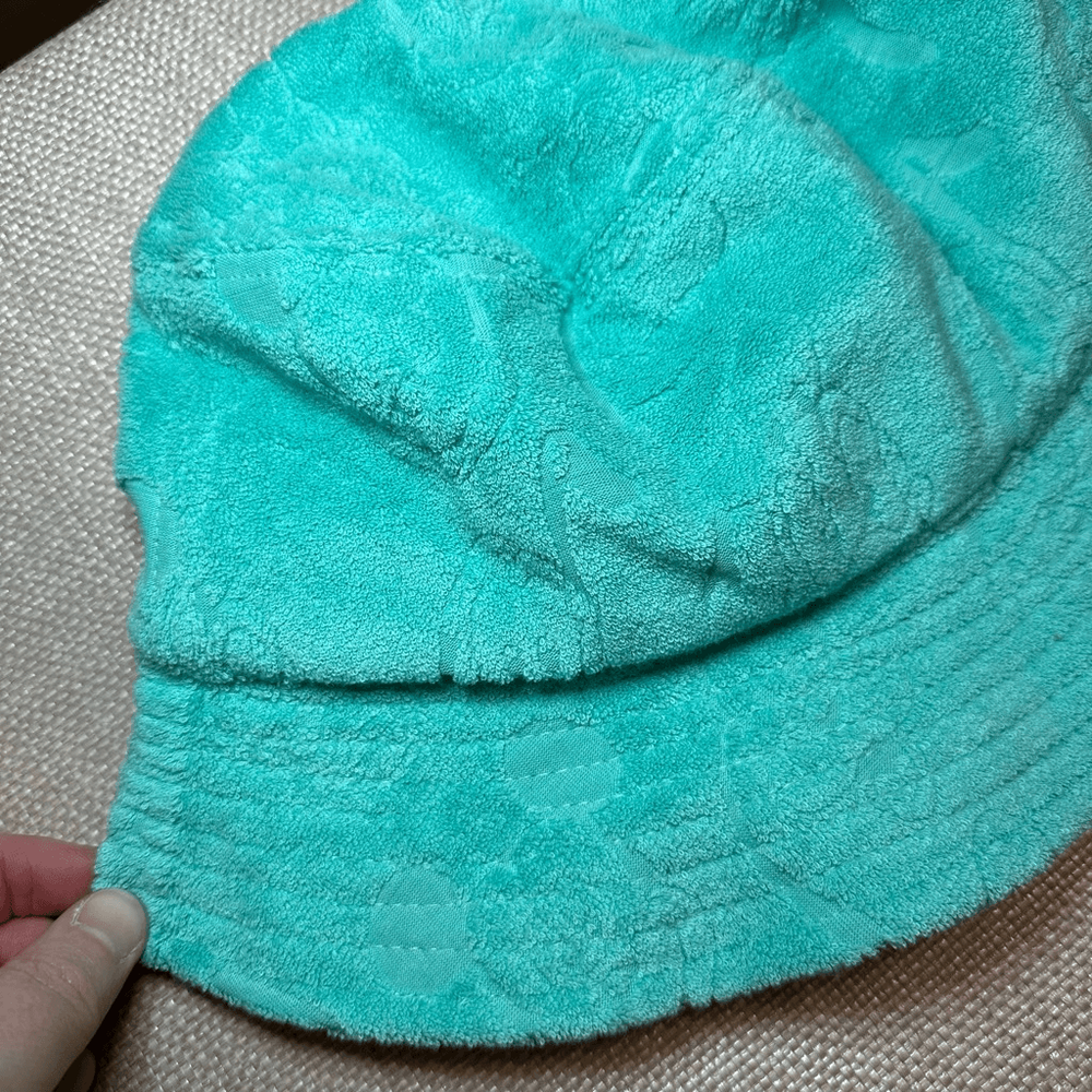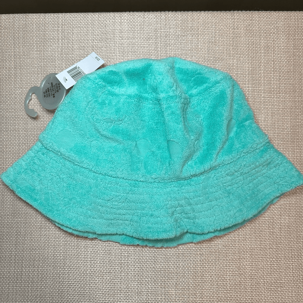 Disney Parks Adult sized bucket hat Lightweight and soft terry material Character pattern embossed Teal mint green blue color Adult one size NWT Smoke free, cat friendly home