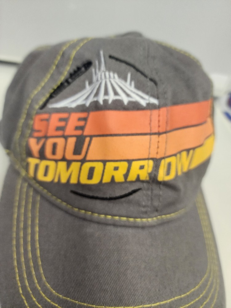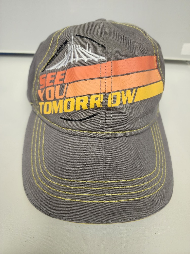 This Disney Parks Space Mountain hat is a must-have for any true Disney fan. Celebrating the iconic Tomorrowland ride, this gray hat features the Space Mountain logo and the phrase "See You Tomorrow." Made for adults of any age and size, it is a unisex accessory that can be worn by anyone. Crafted with care and precision, this hat is a genuine Disney Parks product made in China. It is a contemporary item that is suitable for collectors of Disneyana or anyone who wants to show their love for Space Mountain. Add this Walt Disney World hat to your collection today and celebrate the wonder of Tomorrowland!