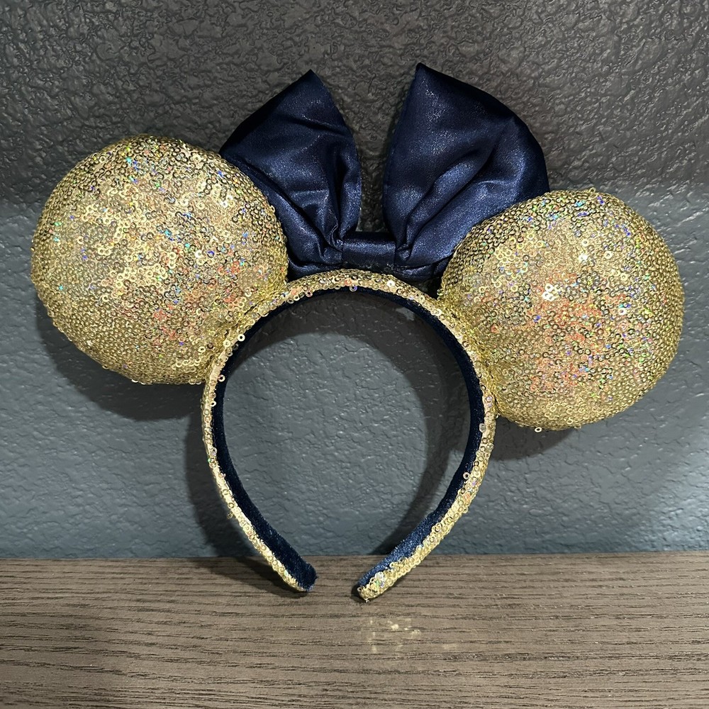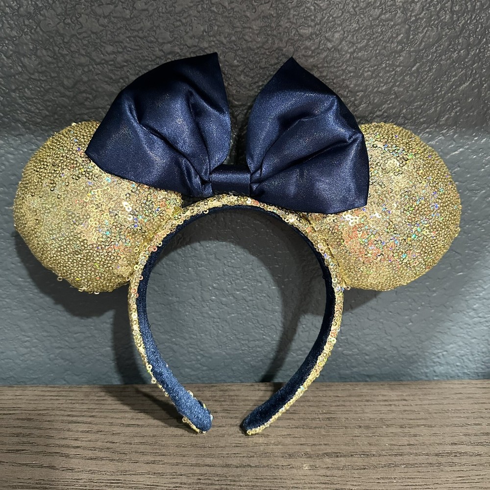 Disney Parks WDW 50th Anniversary Gold Sequin Blue Bow Ears Headband EARidescent
