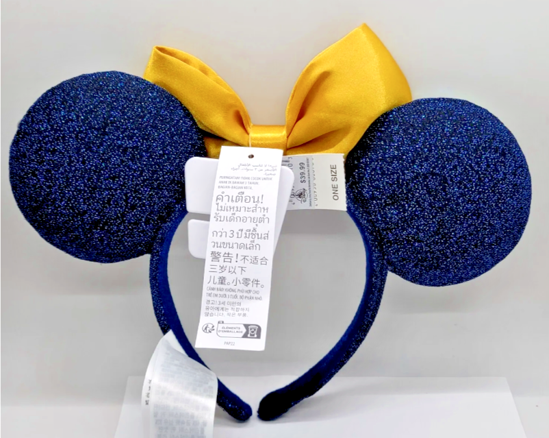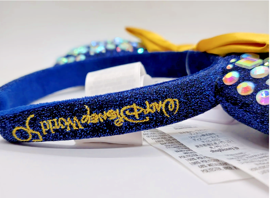 Enhance your Disney Parks experience with this stunning WDW 50th Anniversary Jeweled Minnie Mouse Headband Ears. The sparkling jewels and intricate design will make you stand out while exploring the park. Made with quality materials, this headband is suitable for both men and women, and perfect for adults. Representing the iconic Minnie Mouse character, this headband is a must-have for any Disney and Minnie Mouse fan. Made in China, this collectible piece is perfect for anyone looking to add to their Disneyana collection. Stand out in the crowd and make memories that will last a lifetime with this beautiful and unique headband. Disney Parks WDW 50th Anniversary Jeweled Minnie Mouse Headband Ears New Ship Be sure to celebrate Walt Disney World's 50th Anniversary with these shimmering blue Jeweled Minnie Ears. Features Jeweled Ears with a Gold silk bow and Walt Disney World 50 along the side. Minnie 50th Ears Padded headband Non-slip velvet band lining Part of our Walt Disney World 50th Collection One size fits most Polyester / PVC / polyurethane foam, exclusive of decoration 7 1/2'' H x 11'' W x 1 1/4'' D Imported Authentic Disney Parks Merchandise