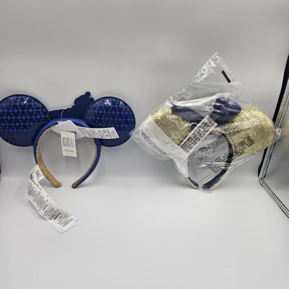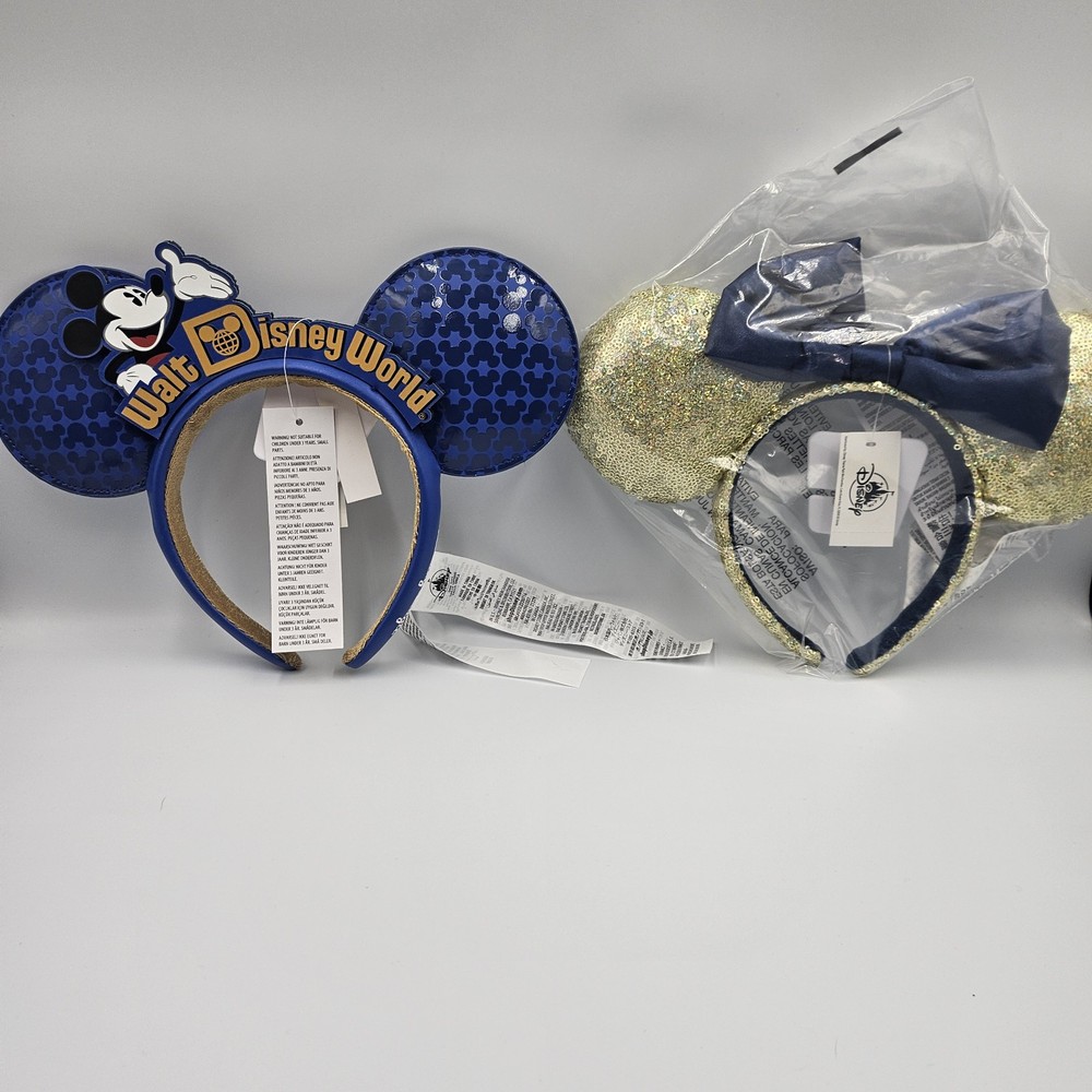 Mickey Ears are new with tags. See all of the pictures. WDW Making Magic Blue Ears Headband & Disney World 50th Anniversary Minnie Gold Navy Sequin Ear Headband NWT...
