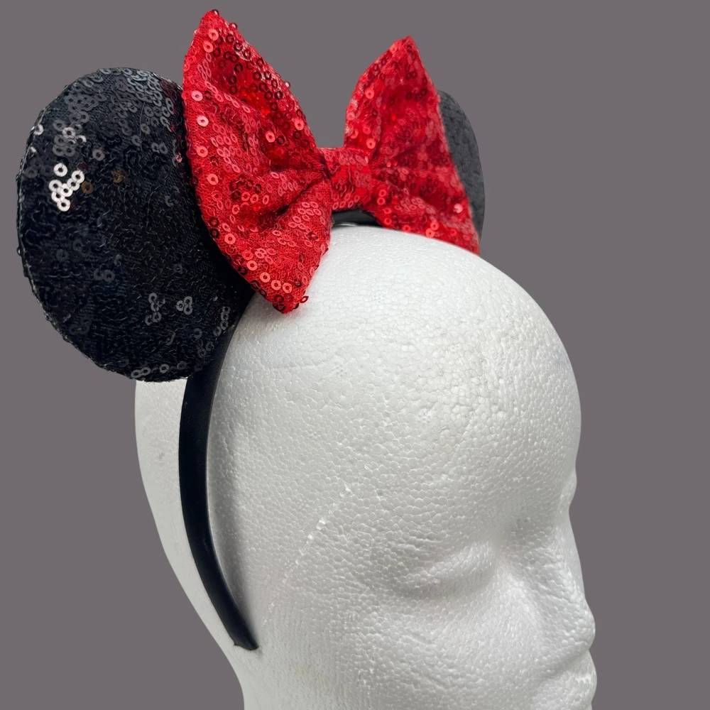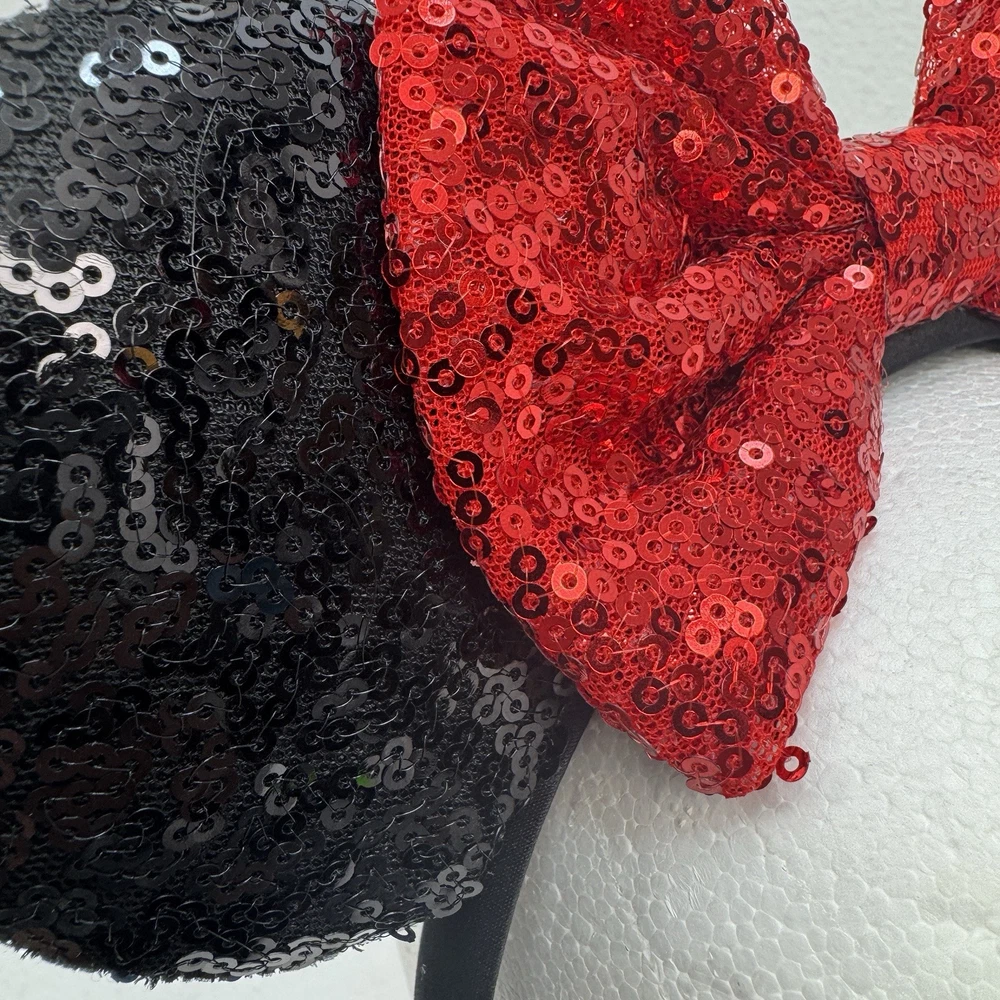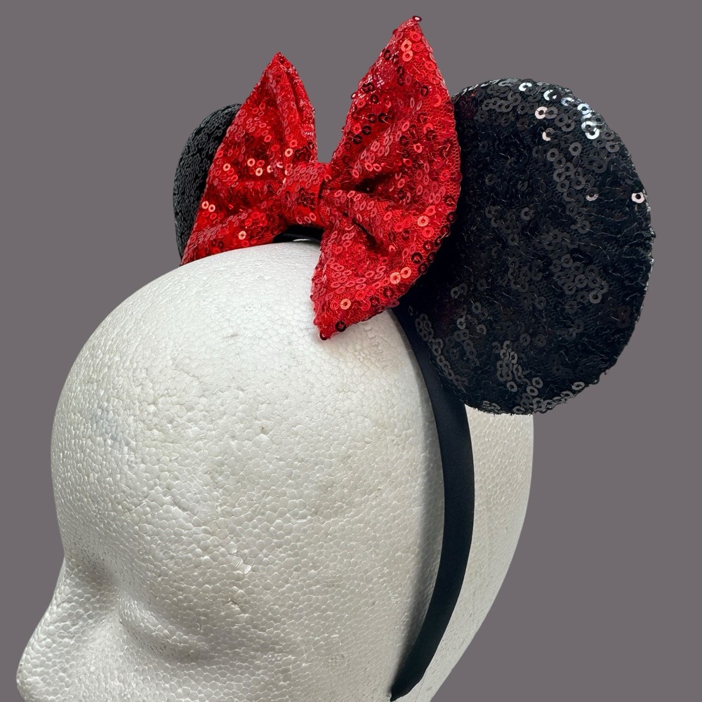 Add a touch of Disney magic to your outfit with these adorable Minnie Mouse Sequin Ears! These colorful headbands feature a shiny red bow and are perfect for any Disney fan. The one-size design makes them suitable for adults and kids alike, while the multicolor scheme adds a fun pop of color to any look. Whether you're visiting the parks or just want to show off your love for all things Disney, these Sequin Ears are a must-have accessory. Please note that this item is a Disney product, but it is not a official Disney product and the item is missing the original tags.