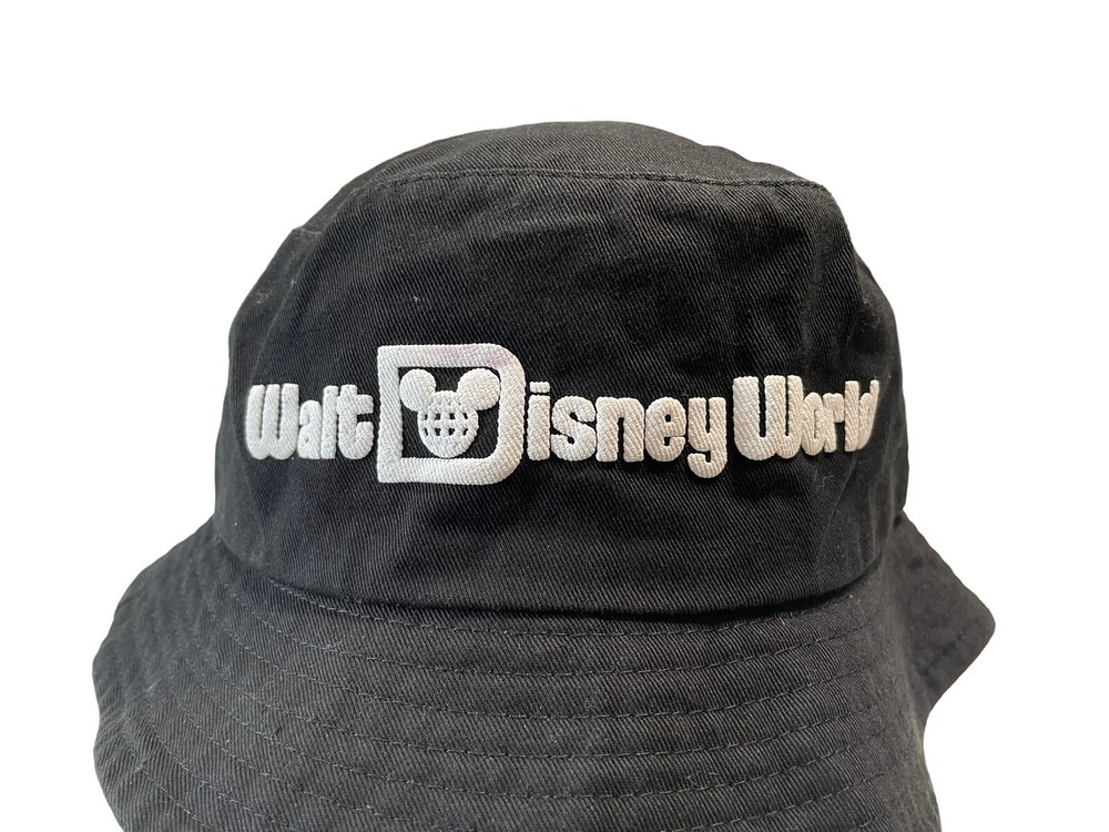 Disney Parks WDW Spirit Jersey Black Walt Disney World Retro Bucket Hat. Good pre owned condition. Some staining and spots of discoloration on the letters...