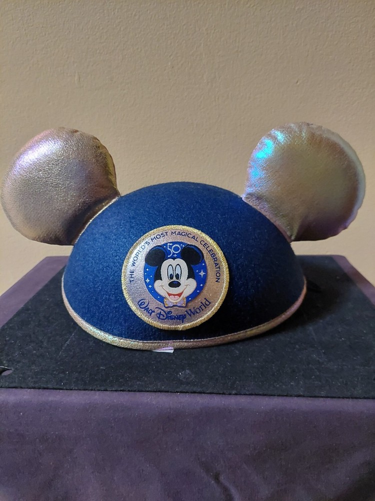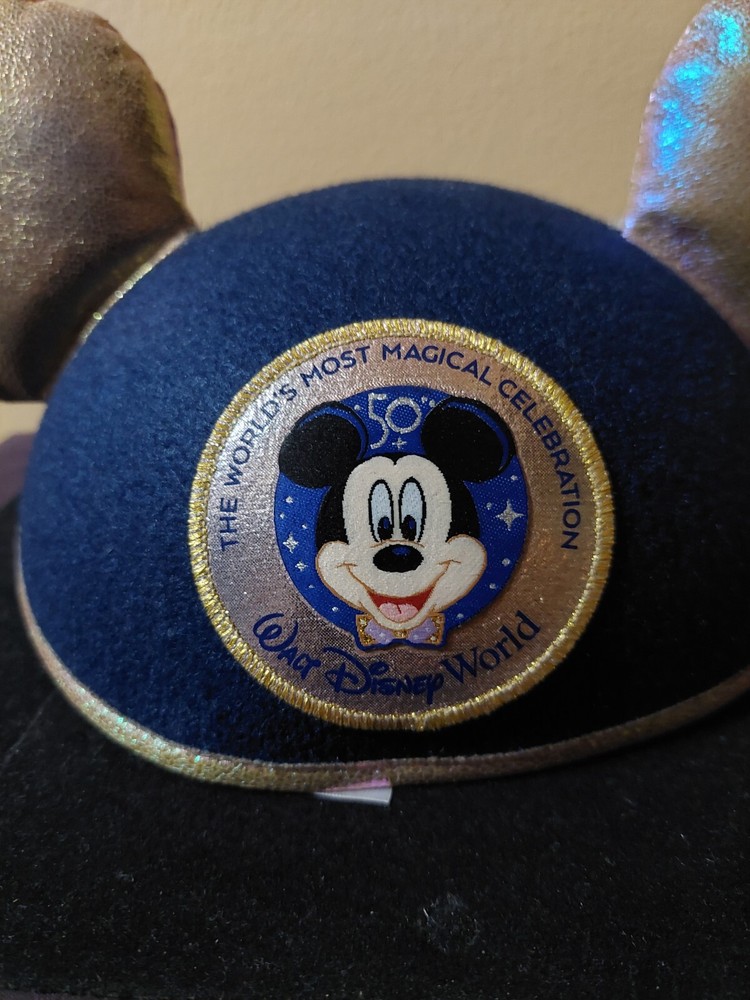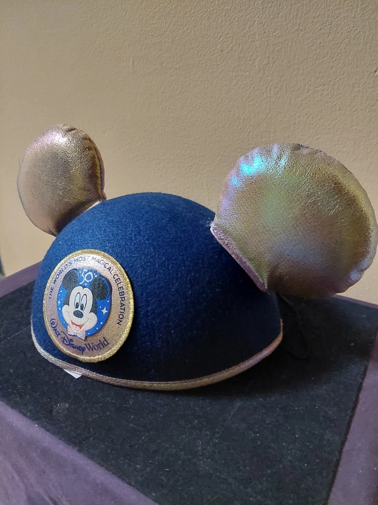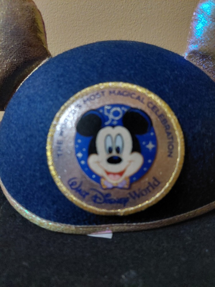 This blue Mickey Mouse hat with metallic looking ears is the perfect addition to any Disney fan's collection. Made in Thailand and suitable for both men and women, this hat features the iconic character from the Disney franchise. The hat is a part of the Disney Parks WDW Worlds Most Magical Celebration collection and is a must-have for any Disneyana collector. The adult one size fits all hat is perfect for wearing to the park or just as a stylish accessory.