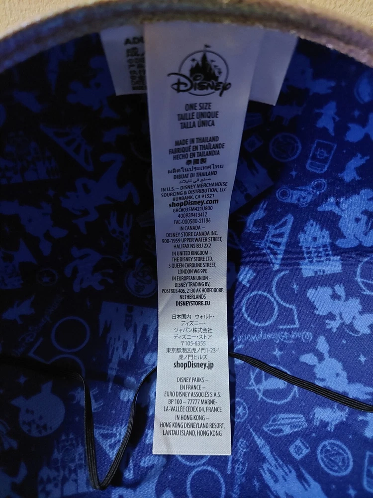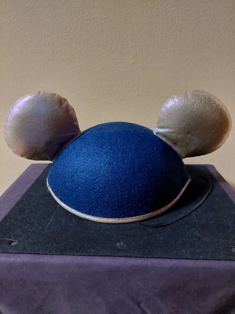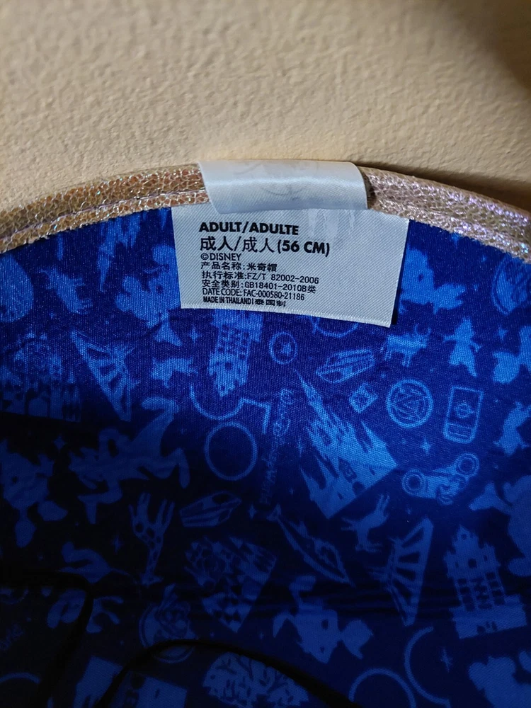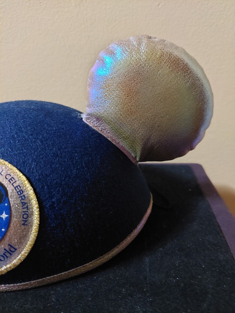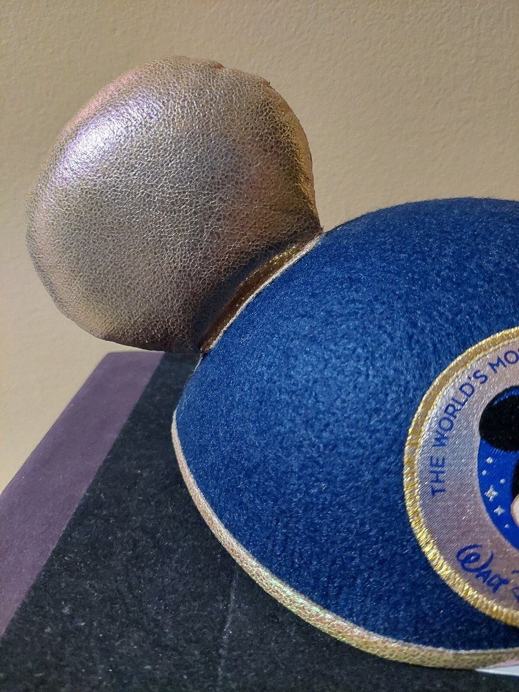 This blue Mickey Mouse hat with metallic looking ears is the perfect addition to any Disney fan's collection. Made in Thailand and suitable for both men and women, this hat features the iconic character from the Disney franchise. The hat is a part of the Disney Parks WDW Worlds Most Magical Celebration collection and is a must-have for any Disneyana collector. The adult one size fits all hat is perfect for wearing to the park or just as a stylish accessory.