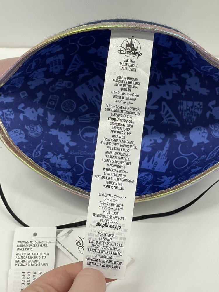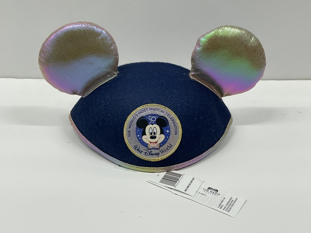 Celebrate the 50th anniversary of Walt Disney World with this Disney Parks adult Mickey Mouse ears hat. The blue hat features the iconic Mickey Mouse character, suitable for unisex wear, and is one size fits all. The hat is perfect for any Disney fan and collectors of Disneyana. Wear it to the park or just as a stylish accessory. The hat is made of high-quality materials and is an officially licensed Disney product. Get this limited edition hat now and show off your love for Disney.