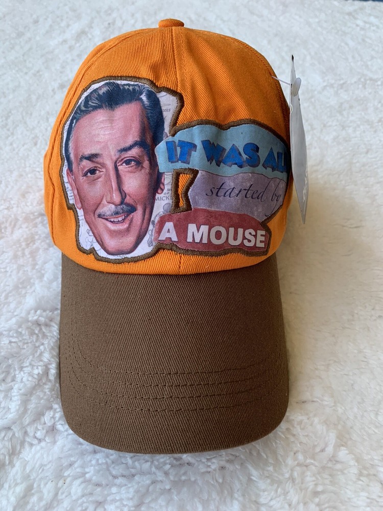 This Disney Parks Authentic baseball cap is a must-have for any fan of Walt Disney World. The cap features a classic 90s design with the iconic It All Started With A Mouse slogan in orange on a solid cotton material. It is lightweight, adjustable, and breathable, making it perfect for travel and casual occasions. The cap is available in one size and is suitable for men. It is a perfect addition to any Disney fan's collection and a great way to show off your love for the theme park. Get ready to sport some serious style with this Disney Parks baseball cap.