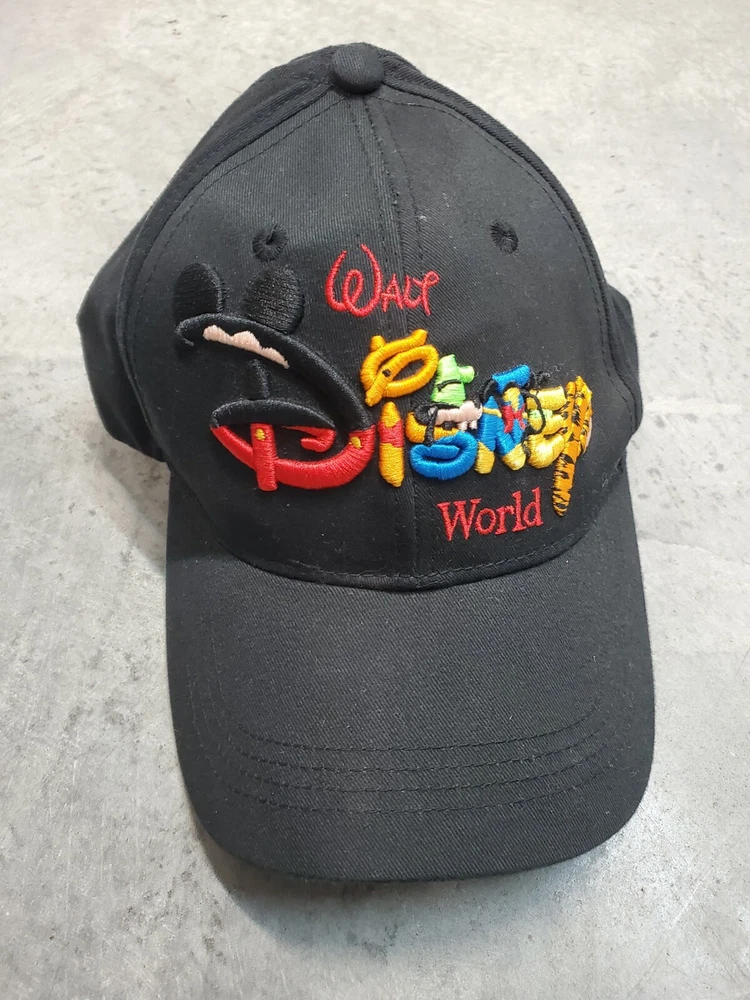 This is a black embroidered 3D hat featuring the iconic Walt Disney World logo. It is a collectible item that would make a great addition to any Disney fan's wardrobe. The hat is designed for adults and is officially licensed by Disney. Shipping varies depending on location