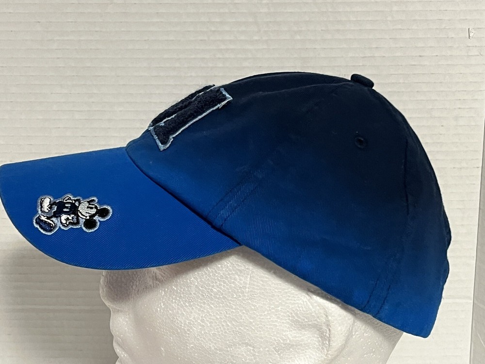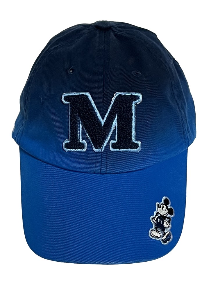 Sharp looking hat in great condition. Hardly worn. Adjustable strap back. Nice Blue ombre pattern with patch M and Mickey Mouse on brim. Says Walt Disney World on side. See photos....