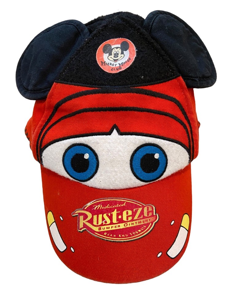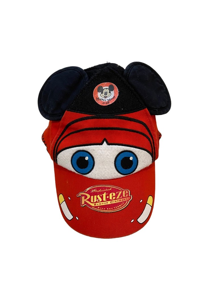 Disney Parks Walt Disney World Mickey Mouse Lightning Mcqueen Red Hat Adjustable.