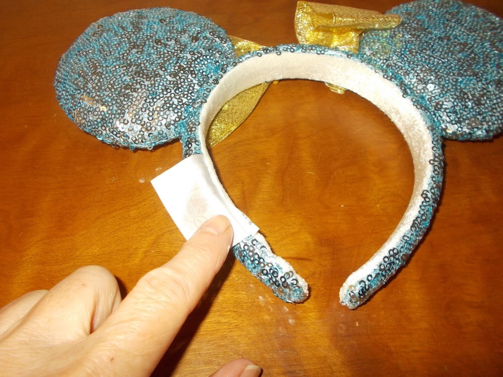 PRE-OWNED: Disney Parks Minnie Mouse Walt Disney World Blue Sequin Ears Headband Authentic Extra Clean