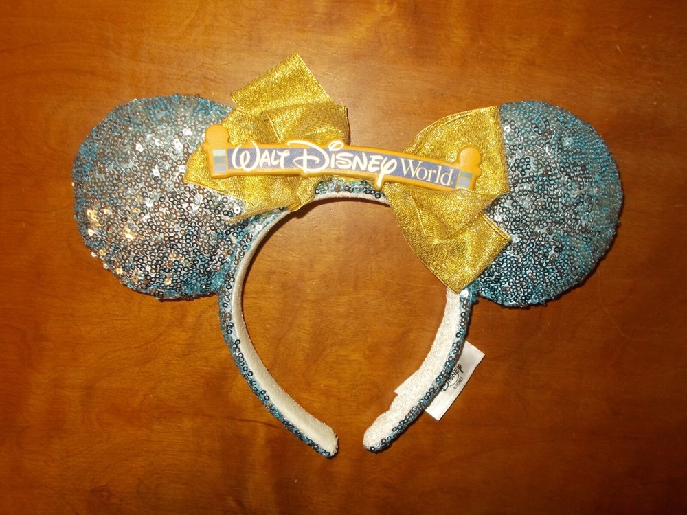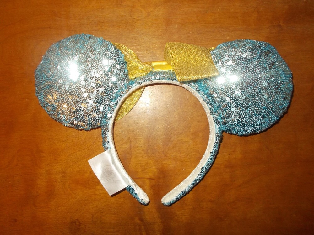 PRE-OWNED: Disney Parks Minnie Mouse Walt Disney World Blue Sequin Ears Headband Authentic Extra Clean...