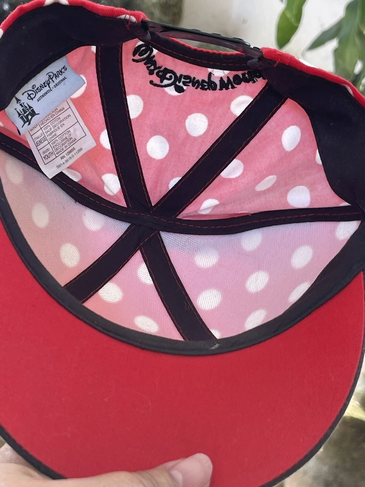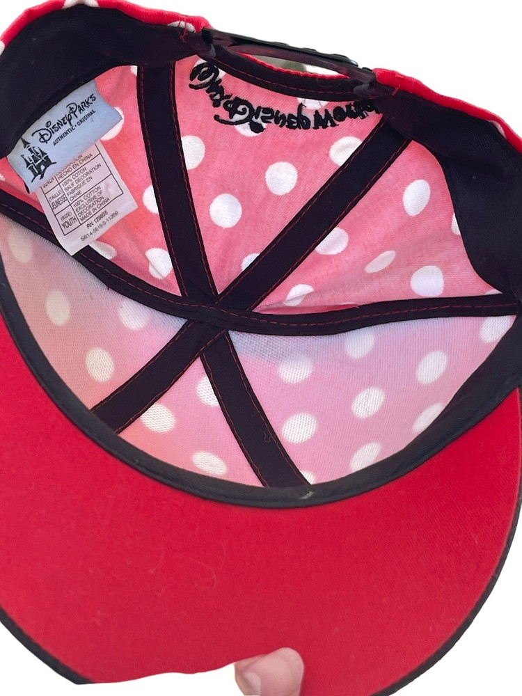 Fit adults as well Disney Parks Walt Disney World Minnie Mouse Red Polka Dot Snap Back Youth Hat.