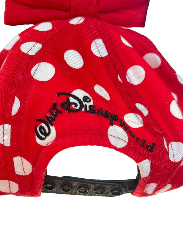 Fit adults as well Disney Parks Walt Disney World Minnie Mouse Red Polka Dot Snap Back Youth Hat....