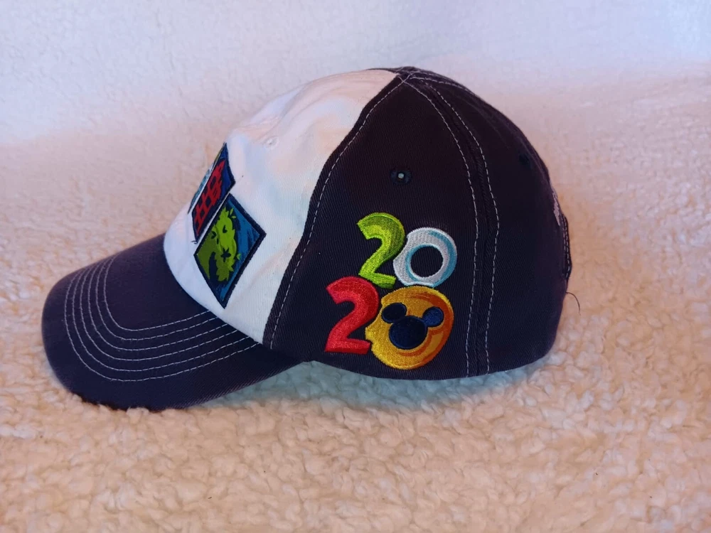 This Disney Parks baseball hat is perfect for any fan of Mickey Mouse and the four parks. The white and navy blue design features park icons and the year 2020. It's one size fits all and great for adults. The hat is a collectible item from Walt Disney World and a must-have for Disneyana enthusiasts. The featured refinements are perfect for any contemporary Disney collection. Get this hat to add to your Franchise collection today! Snapbackbtab has been modified, please see last picture. Hat may need shaping. Please see pictures for condition. Ask for Combined Shipping Quote when you buy 2 or more listings prior to checkout. (SA1)