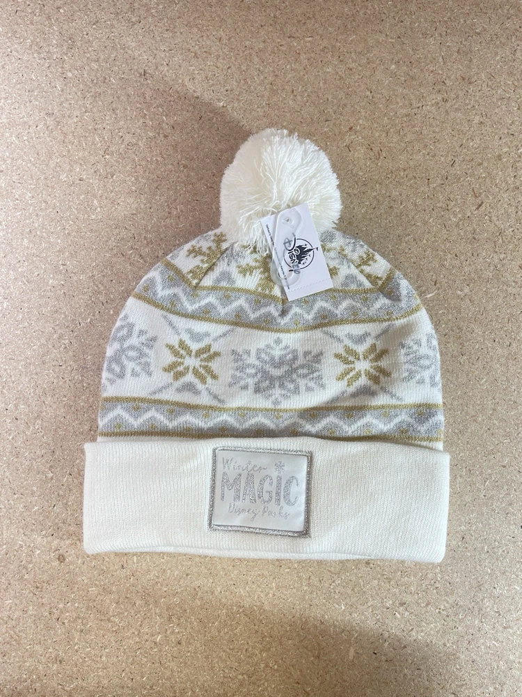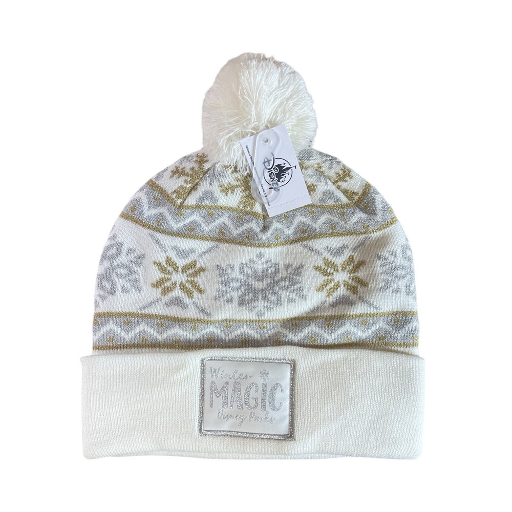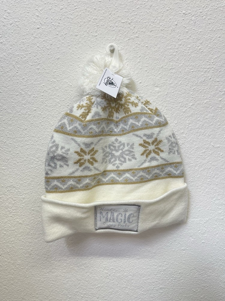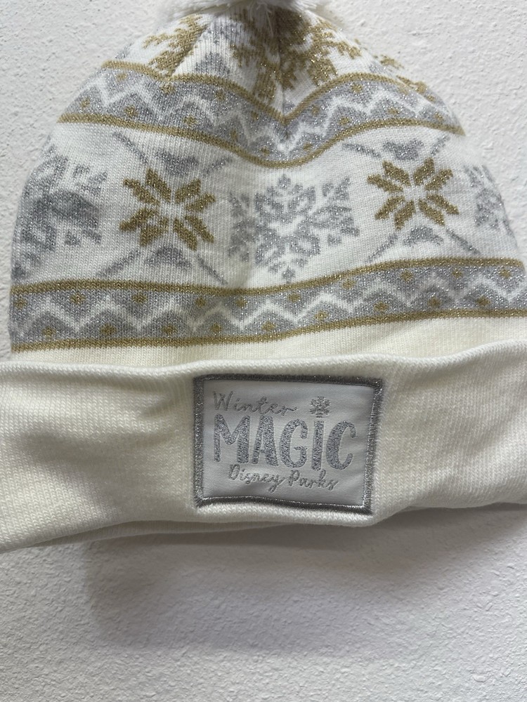 EW Disney Parks Winter Magic Silver and Gold Glitter Snowflakes Beanie – Adult One Size Stay cozy and stylish with this Disney Parks “Winter Magic” beanie, part of the stunning Silver and Gold Collection. Featuring shimmering snowflakes and hidden Mickeys, this beanie is the perfect winter accessory whether you're headed to the parks or out for a chilly stroll. Details: Brand: Disney Parks Collection: Winter Magic – Silver and Gold Size: Adult O/S (One Size) Color: Ivory with Silver and Gold Condition: Brand New with Tags Features: Soft knit construction Woven silver and gold snowflake pattern with hidden Mickeys Embroidered “Winter Magic Disney Parks” patch on cuff Glitter threading throughout for a festive sparkle Cozy white pom-pom topper Made of 94% acrylic / 1% spandex / 5% other fibers Pair it with the matching scarf (sold separately) to complete the ultimate winter Disney look! Find here: https://www.ebay.com/itm/277015890786