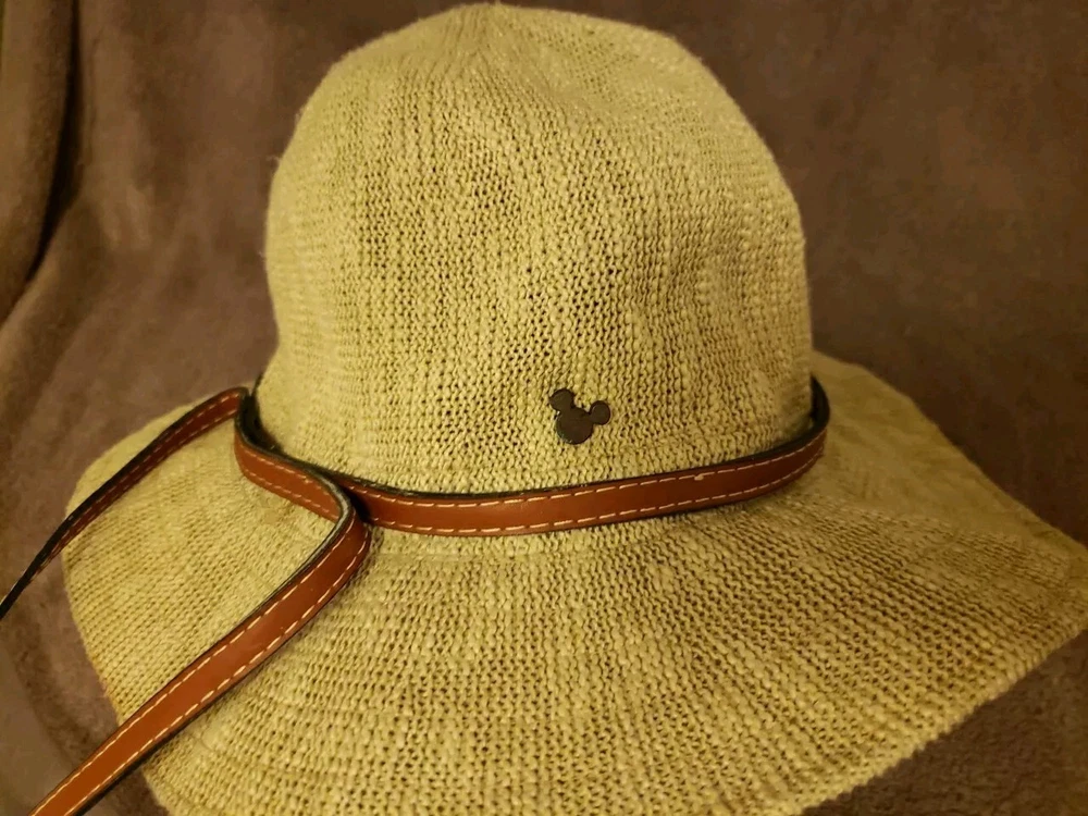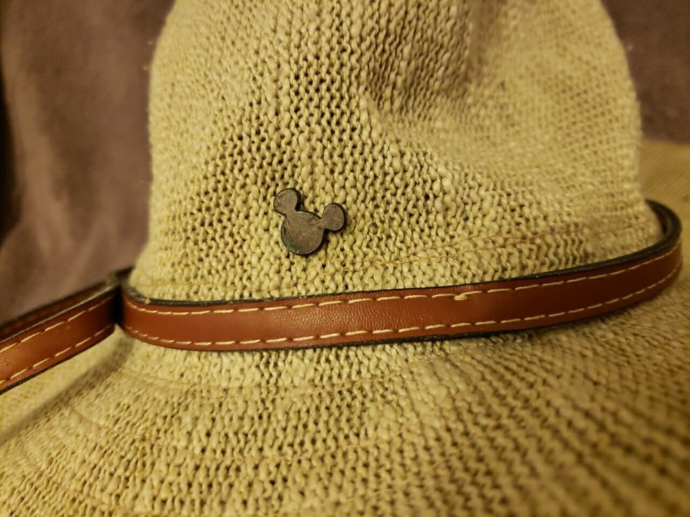 Disney Parks Branded Safari Style Sun Hat - Woven Tan with Brown Leather Band Small Mickey Detail. Size "Adult"...