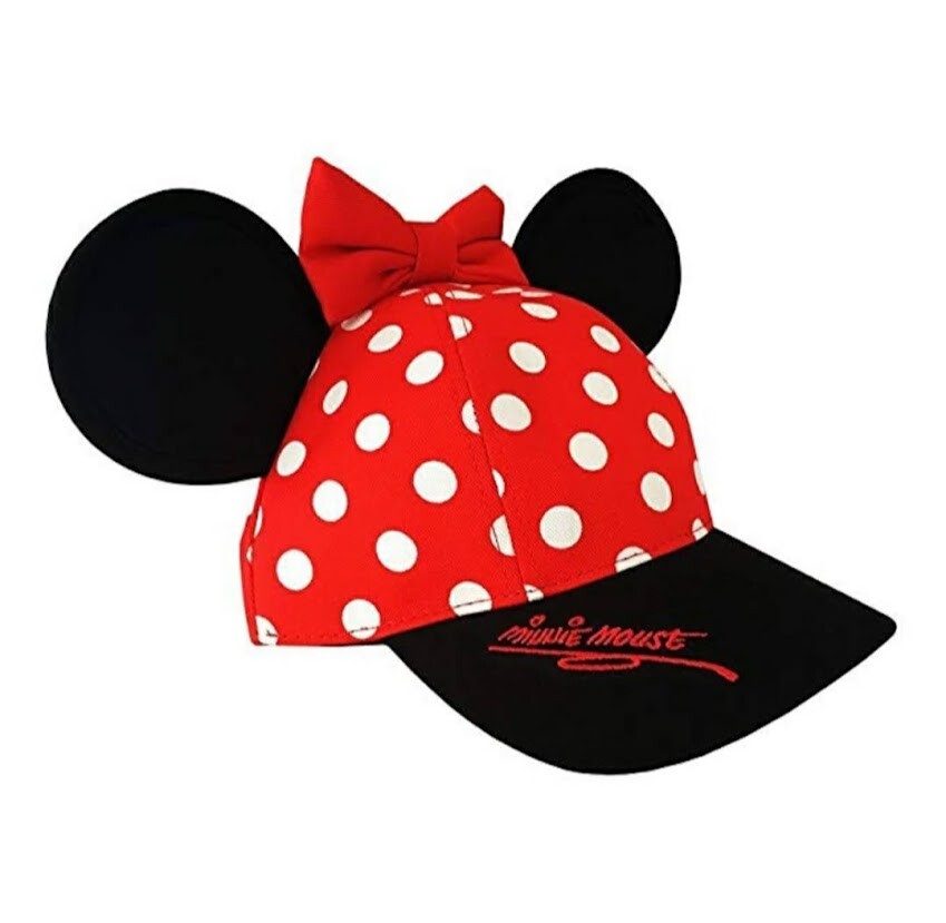 Disney Park's Youth Hat Minnie Mouse With Ears Red Polka Dots Walt Disney World Snapback 100% Cotton...