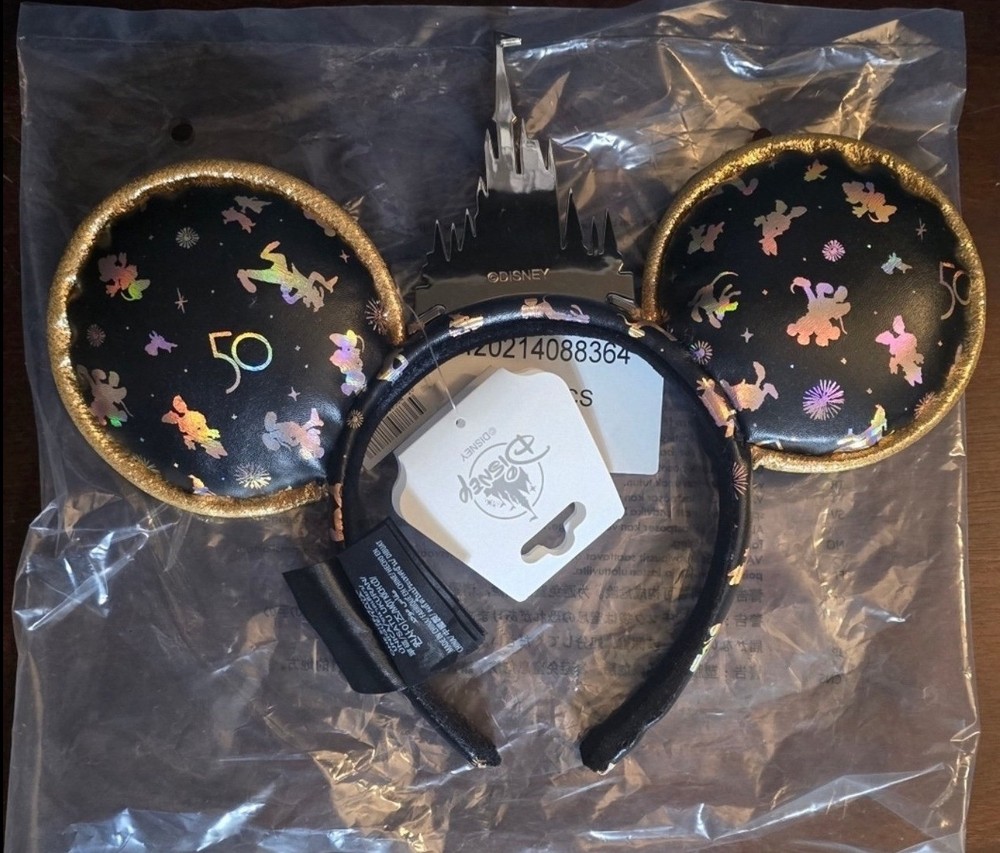 This Disney WDW 50th Anniversary Grand Finale Fireworks Mickey Mouse Ears Headband is a special collectible item featuring a design inspired by the celebration of Walt Disney World's 50th anniversary. The headband showcases Mickey Mouse ears adorned with a unique fireworks theme, making it a must-have piece for Disney fans and collectors. Perfect for adding a touch of Disney magic to any outfit or for commemorating this milestone event in Disney history.