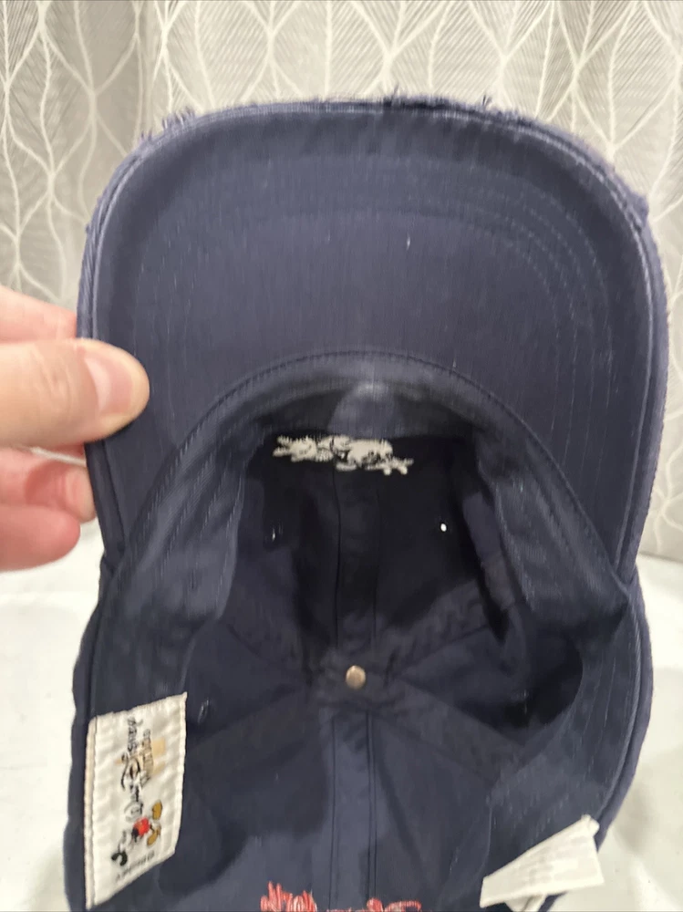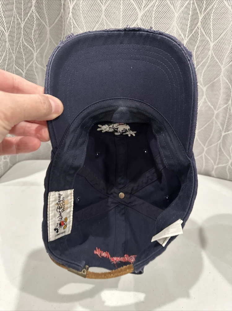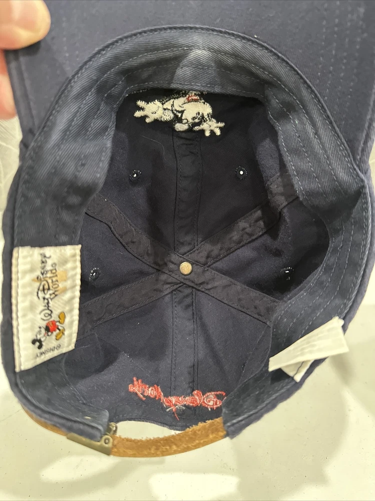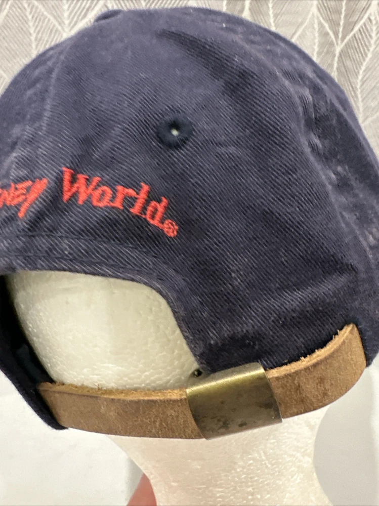 Love this hat! The navy blue color is classic Mickey, and the distressed leather strap with buckle gives it such a cool vintage vibe. The cotton is super soft, and even though it's pre-owned, it looks brand new—no wear at all! The packaging was great too—secure and safe for shipping. At this price with affordable shipping, it's an awesome deal for any Disney fan. Definitely adding this to my collection!