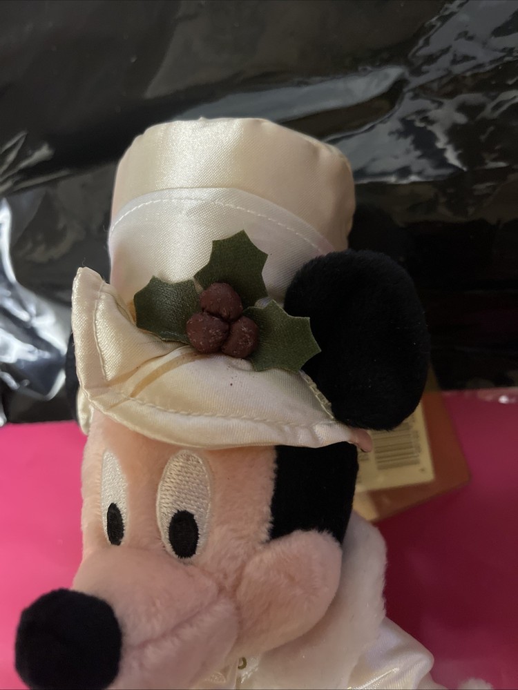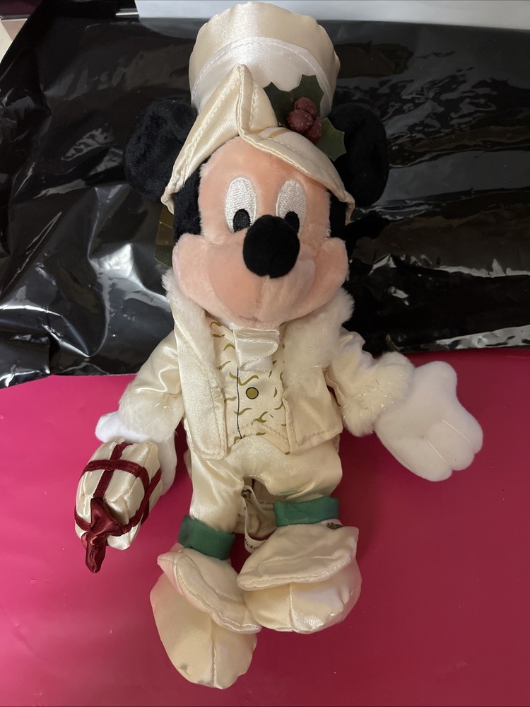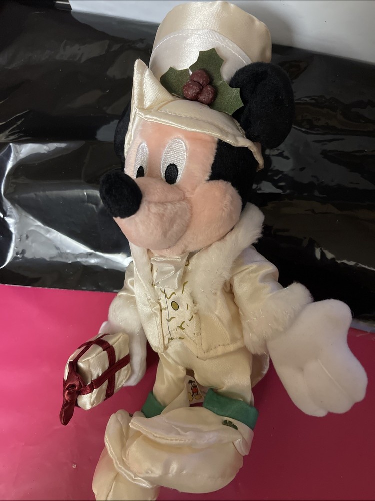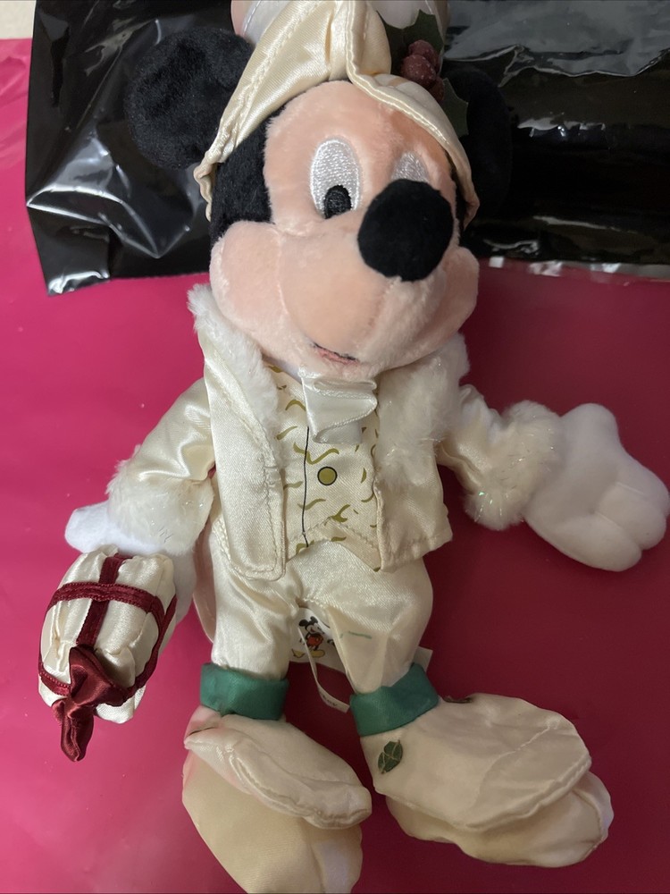 This is Holiday Mickey and only available at Walt Disney World Park. Mickey is dressed in fancy silky outfit. He needs some fluffing up from being stored. Tag in protector. Never played with Any questions please ask Check out my other items