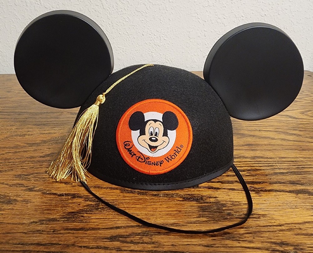 Walt Disney World Mickey Mouse Ear Hat Felt Cap Black w/ Tassel....