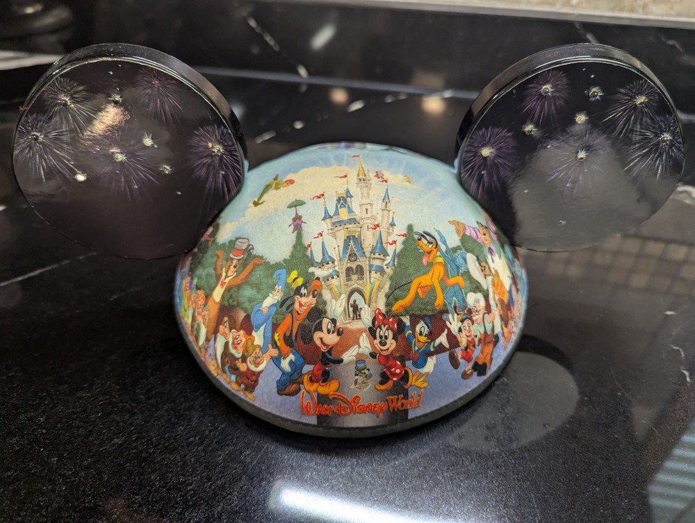 advise, one ear does not light. no batteries included. The product is a Disney-themed Mickey Ears hat featuring various characters and themes from the Disney franchise. The hat is designed for adults and showcases a multicolor pattern, making it a unique and vibrant accessory for any Disney fan. Perfect for adding a touch of whimsy and charm to any outfit, this Mickey Ears hat is a must-have collectible for fans of Disney and its iconic characters.
