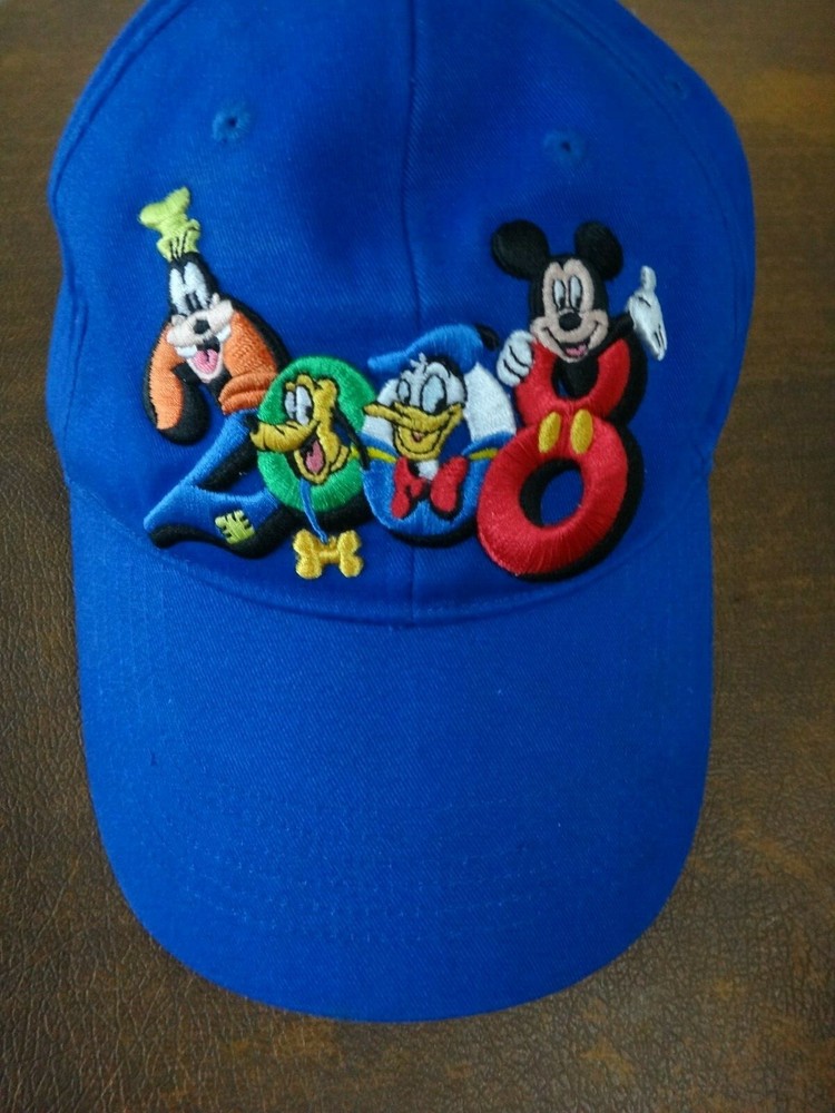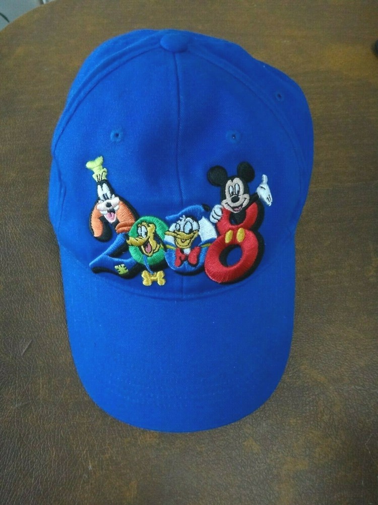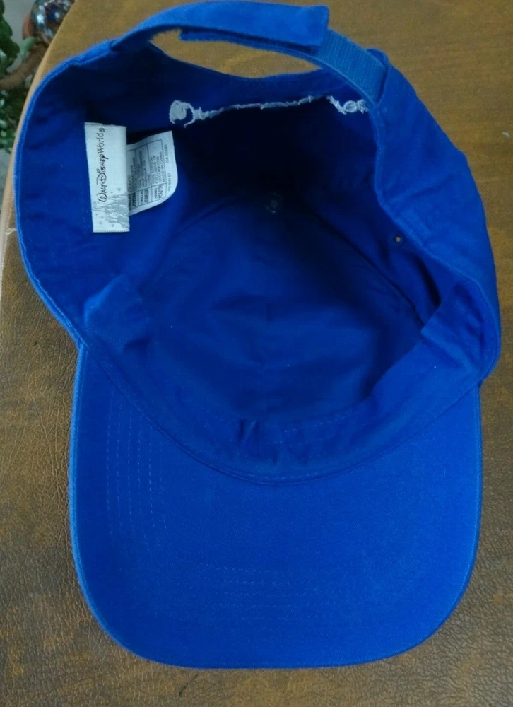 Vibrant blue Walt Disney World 2008 youth baseball cap hat. Nice condition. Two small thread pulls on bill (see pictures). While it says youth, it looks like a teenager or small adult could wear this ...