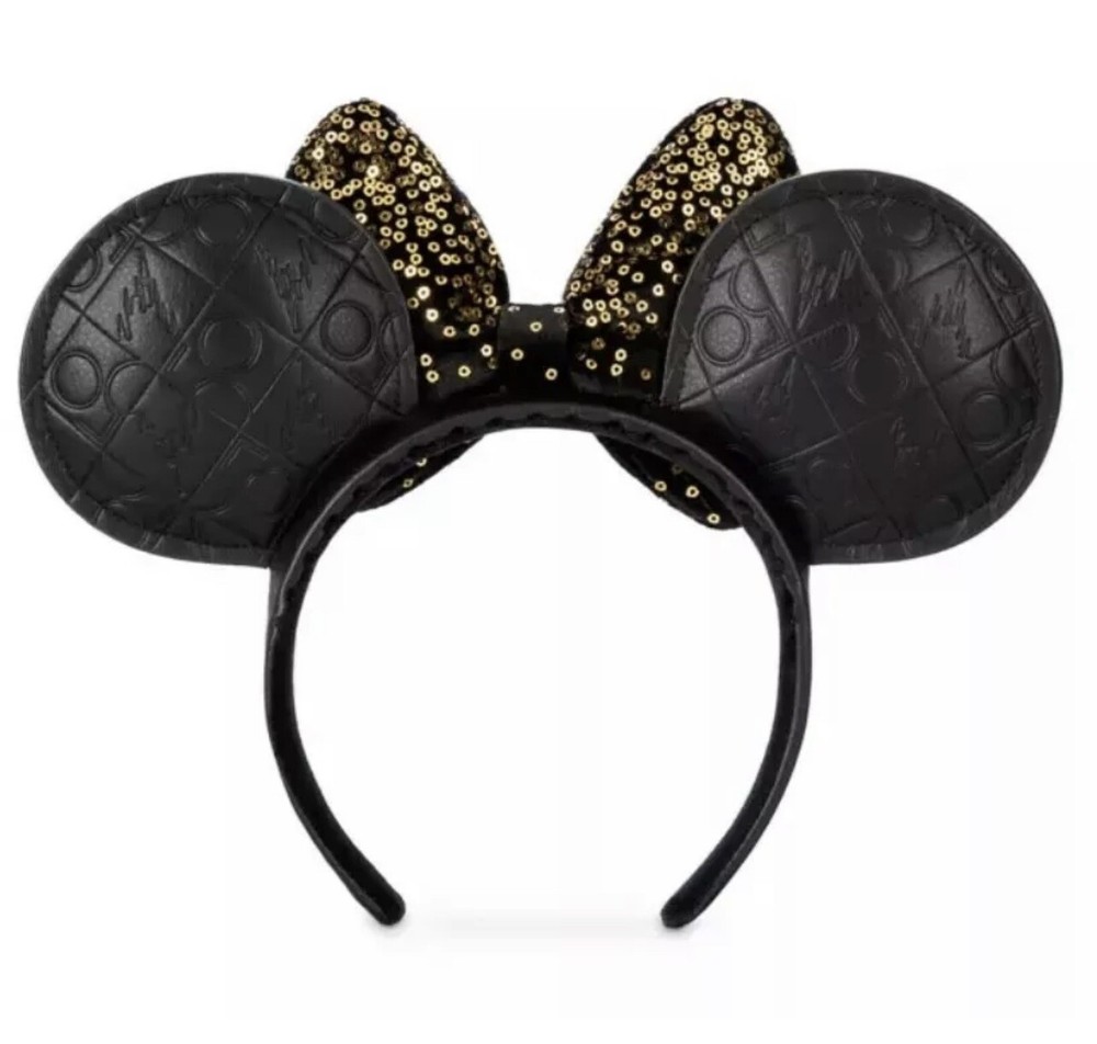 Disney World 50th Anniversary Black Luxe Gold Minnie Headband Ears Sequin - NEW. You are Purchasing a Disney World 50th Anniversary Black Luxe Gold Sequined Minnie Headband Ears.Join in The World's Most Magical Celebration when you're wearing this special Minnie Mouse Walt Disney World 50th Anniversary Ear Headband. The padded black faux leather ears feature an embossed 50th Anniversary pattern while the padded bow is decorated with gold sequins. Exclusive Disney Theme Parks Merchandise. Brand New w/Tags. In Stock For Quick Shipping! WDW 50th Anniversary Disney World merchandise. Listing is for brand new, purchased-at-Disney-World. Recently released as part of the Walt Disney World 50th Anniversary Celebration line of merchandise. This is a 100% authentic official Disney merchandise. Will be shipped via USPS First-Class Mail or Ups unless buyer requests and pays for another shipping service. Feel free to contact me with any questions! will be shipped out the same day or next morning depending upon when they were ordered during the day.
